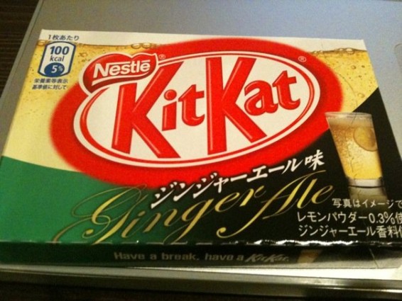Perhaps green tea and strawberry are a natural and good variation of the traditional chocolate Kit Kat, but recently at the my local combini, I saw something weird: Ginger Ale flavored Kit Kat. I had to buy it just to try and just as strange as it sounded, it tasted even stranger.