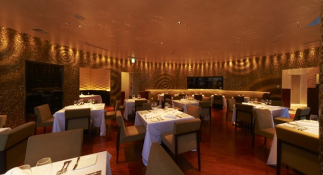 The gold-walled dining room on the fourth floor is clearly designed to impress, with the circular room boasting both stunning views of the city and a window into the hectic kitchen giving equal weight to the cooking process and the awe inspiring architecture outside. The bar next door is casual enough to stop by for just a drink and fancy enough to impress.