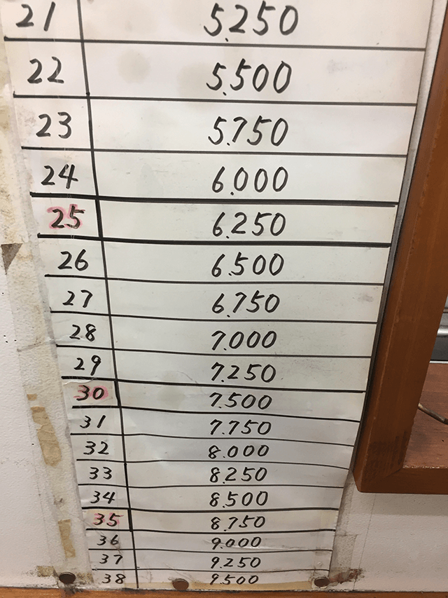 ,,, but Kameido Gyoza’s price list goes up to 38 plates. (The sumo stables aren’t too far away from here.)