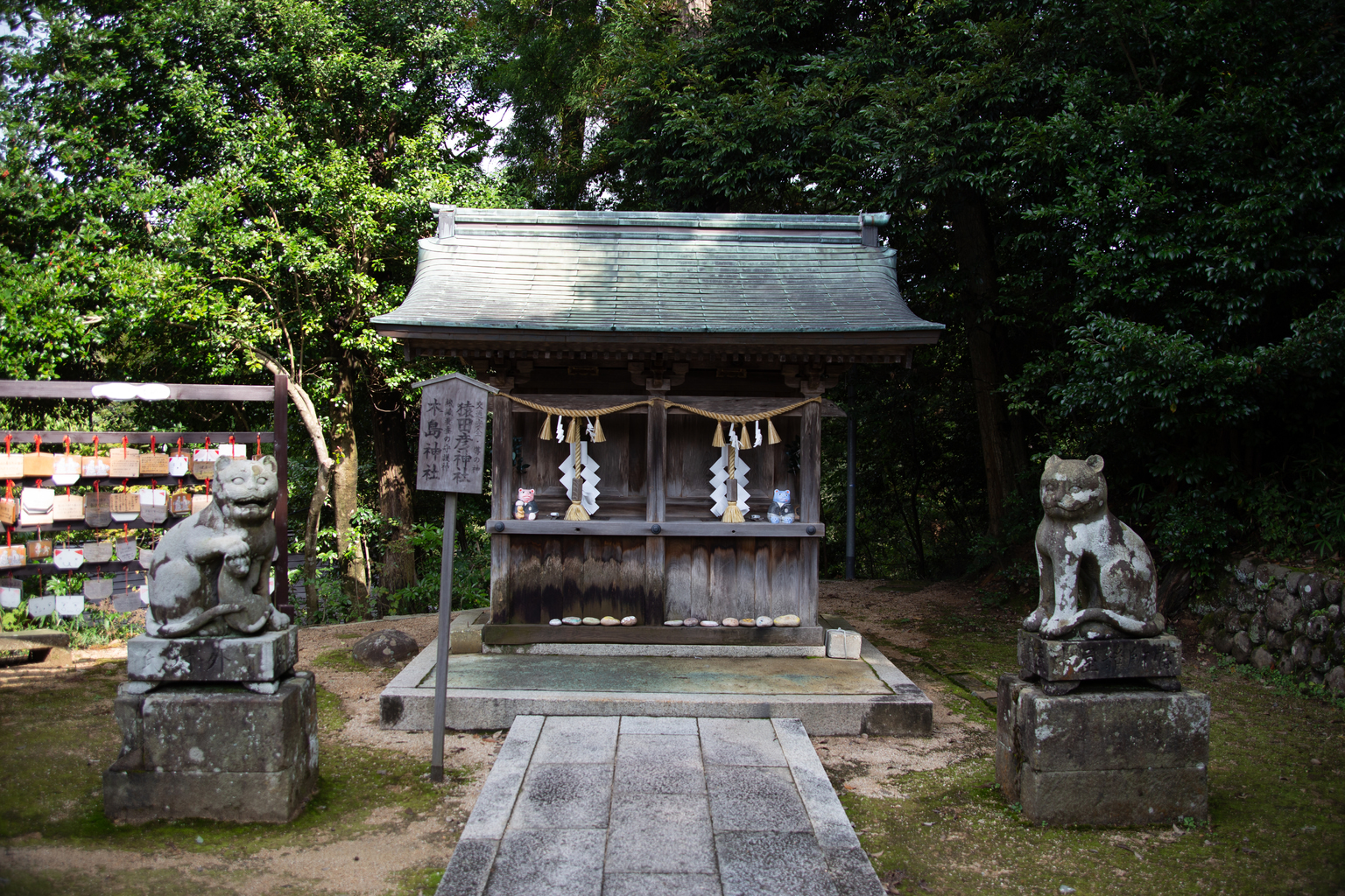 Shortly after Kyotango’s Kotohira Shrine was built in 1811 to honor the god protecting sailors and fishermen, local silk producers donated proceeds to build Kishima Shrine inside the existing compound. Two cat statues were erected, making Kishima Shrine the only shrine in Japan protected by cats rather than dogs. Longtime allies of the silk industry, the cats fend off rats who threaten the woven silk fabric, locally called Tango chirimen.
