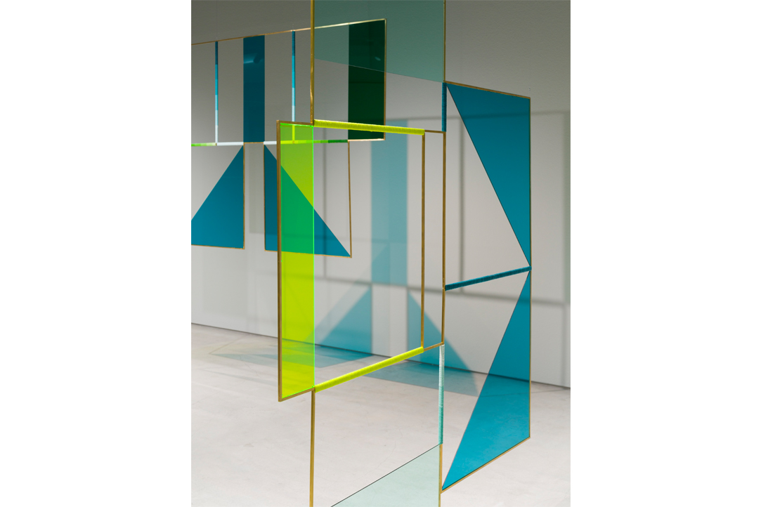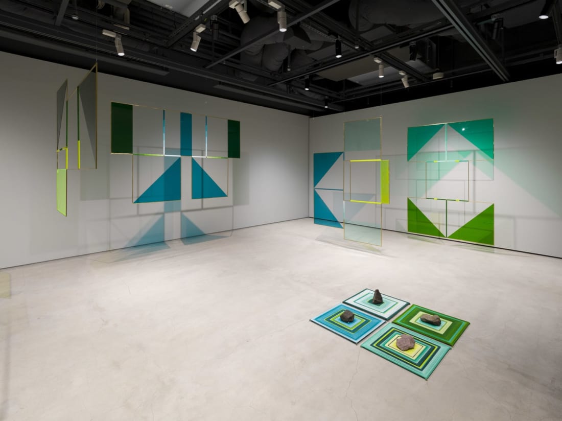 While much of the preparation for the installation was conducted prior to her arrival in Tokyo, Peña Salinas wanted to source the four rocks that would serve as the pyramid-like centerpieces of her floor sculpture from Japan. Immediately after her arrival in Tokyo last August she was whisked away to Nagano, where she lived in the mountains for a month, sifting through slate stones in a nearby waterfall, mostly in the mist and rain.