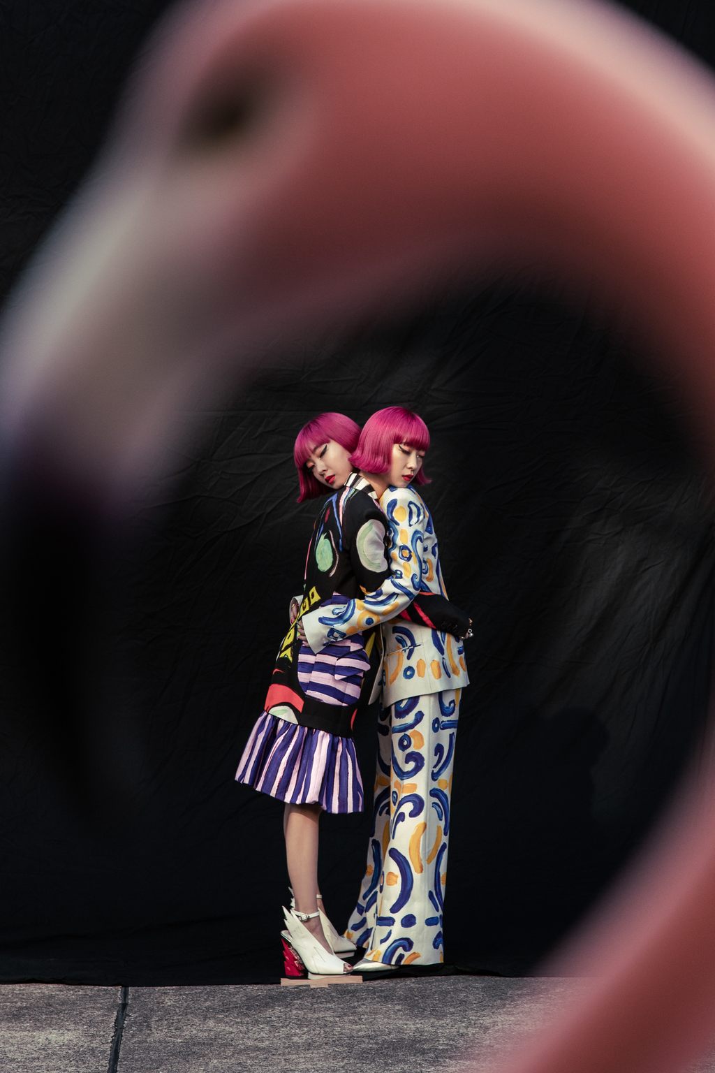 Known for their pink bobbed hair and flamboyant wardrobes, Ami and Aya Suzuki have a goal: to leave their mark on the fashion industry. The colorful identical twins, referred to collectively as AMIAYA, have seen their fame spread rapidly over the past couple of years thanks to numerous appearances at international fashion weeks.