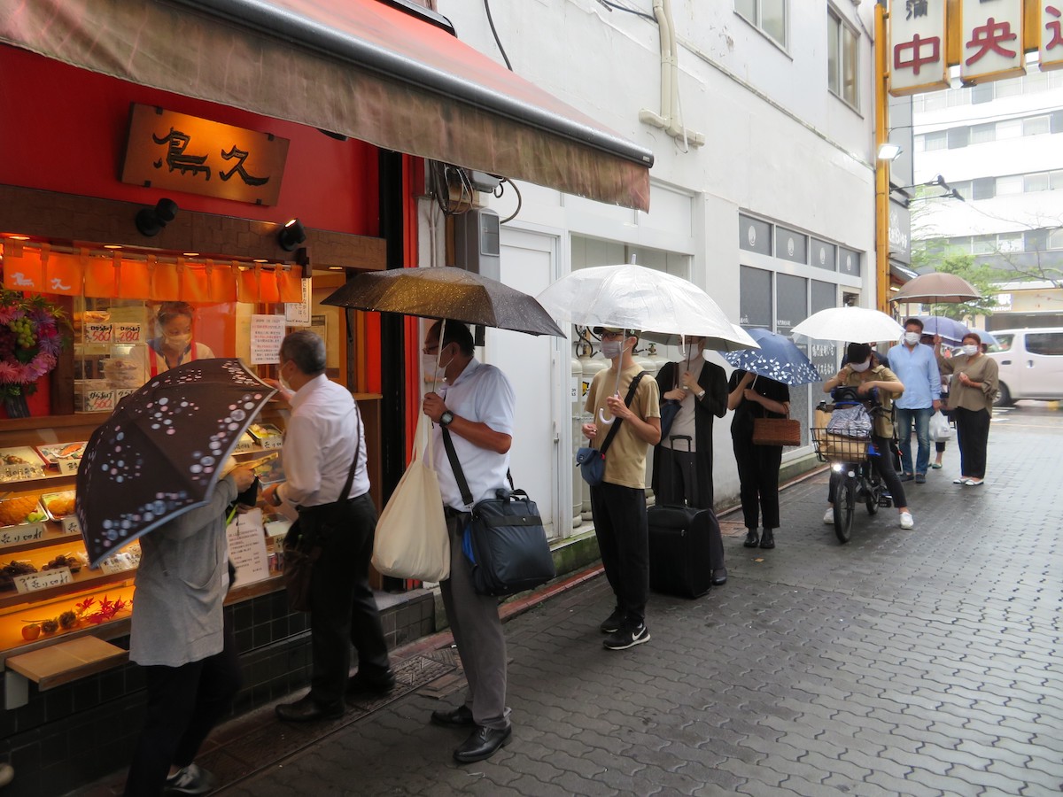 People wait in line to buy the best kara-age in the neighborhood. Photo by Vicki L. Beyer.