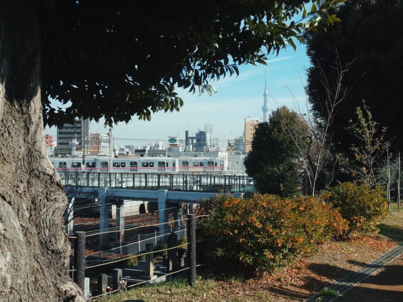 If it feels a bit weird to visit a cemetery to go train watching, that might be because it is. Luckily, Yanaka Cemetery, surrounded by several temples and famous for its cherry blossom street, is actually a rather popular spot to visit. If you are lucky, you will find some cute cats napping around the area. The cemetery is also famous for being the resting place of the last shogun of Japan, Tokugawa Yoshida, so make sure to see his burial place there. As for the trains, when you enter the cemetery from Nippori Station, make sure to stay to the side next to the tracks and try to catch a view of the intersecting trains with Tokyo Skytree towering over the retro buildings of Taito Ward in the background. Map