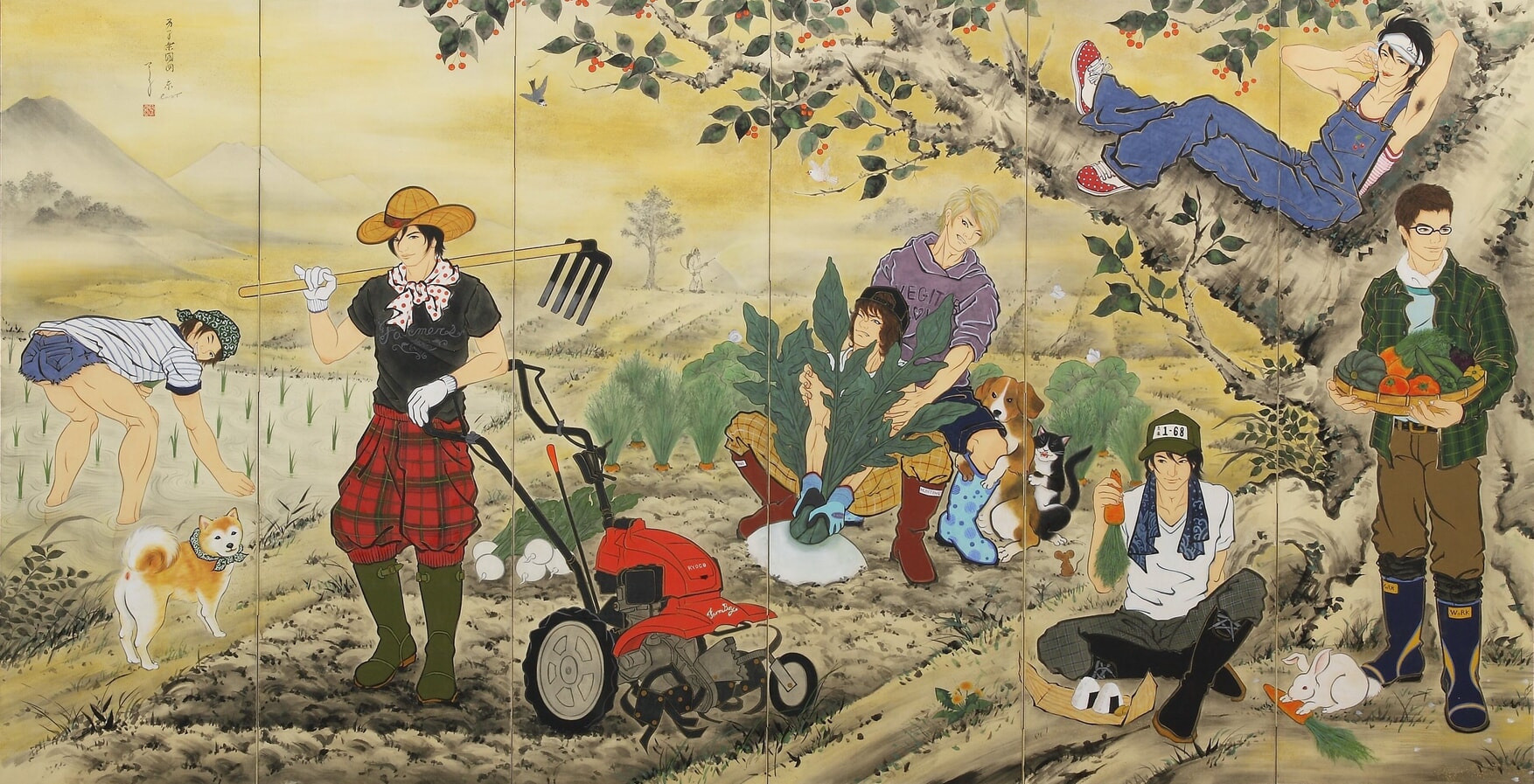 Ryoko Kimura, “Men’s Paradise Folding Screen (Binan Rakuenzu Byōbu)” (Left Side), 2011, Photo by Kei Miyajima