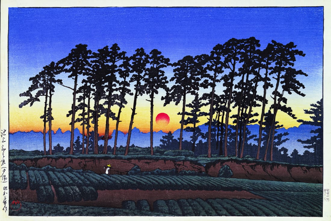 Kawase Hasui, “Ichinokura at Ikegami, Sunset,” from the series Twenty Views of Tokyo, 1928, Woodcut on paper, S.WATANABE COLOR PRINT CO.