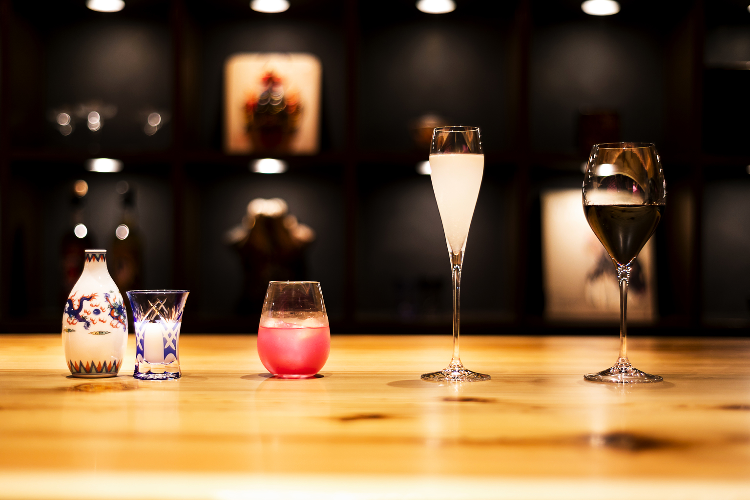 After 8:30pm every night, Suigian becomes Momokawa Lounge – a sophisticated bar and lounge that offers a more casual setting for the late evening stage performances. Savor one of the many a la carte menu items together with a wide variety of beverages as you take in the show. Named for a legendary Edo period restaurant that hosted Commodore Perry once, Momokawa Lounge hopes to bring a taste of traditional Edo style hospitality into the modern age. The bar offers a carefully curated menu featuring exclusive nihonshu and other Japanese spirits.