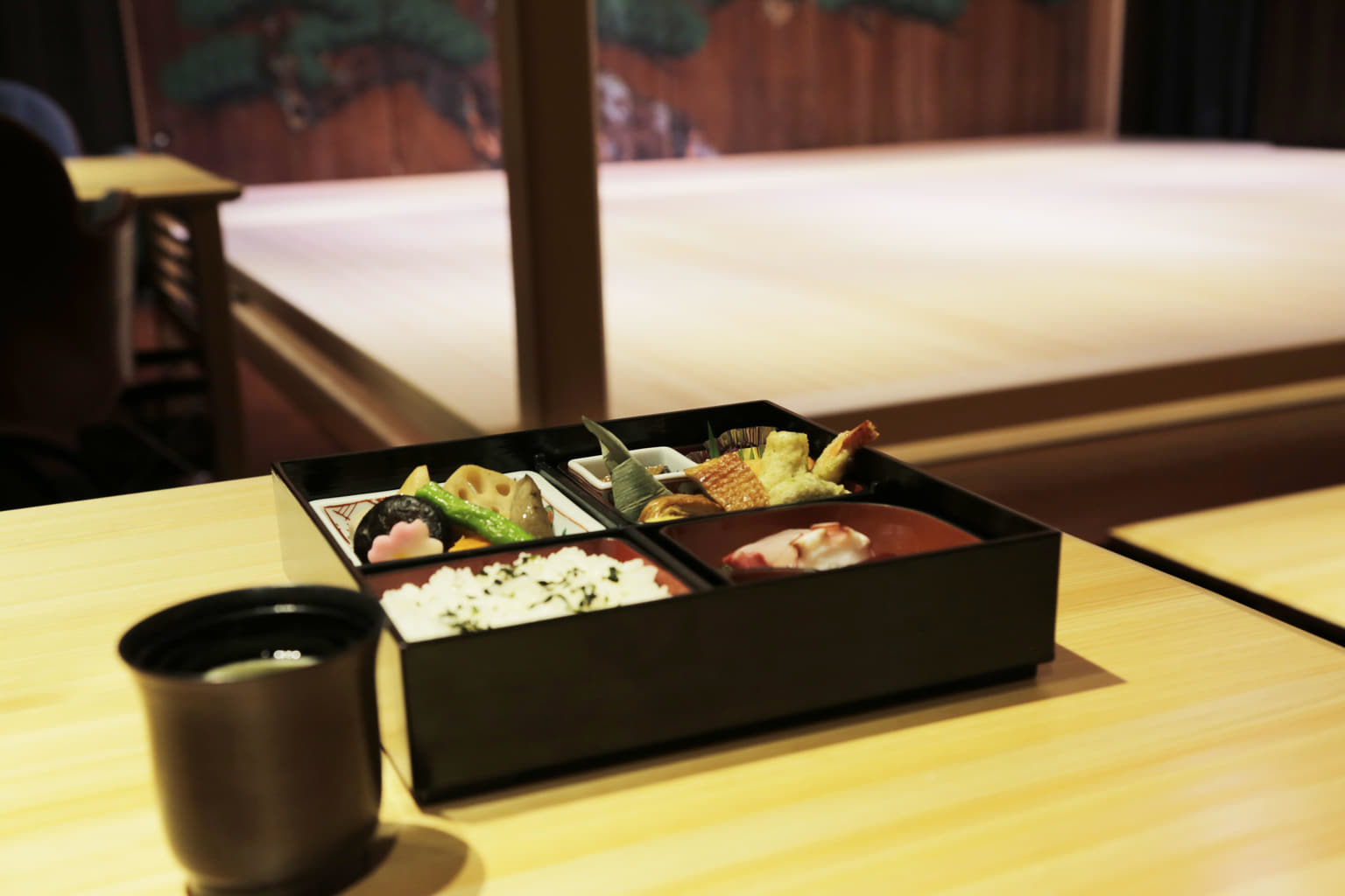 Typically noh, gagaku and other stage performances are traditionally enjoyed without food, but at Suigian you can enhance your experience by adding a taste of old Japan on your plate. Suigian serves traditional Nihonbashi-style Edo period fare so you can enjoy the same flavors as people did in the past. Each dish is prepared with the utmost skill and sophistication, and guests may choose blue label seafood – fish that is sustainably sourced. If you have a sweet tooth, sample some of Suigian’s wagashi, which is sourced from two famous Kyoto confectioners, Oimatsu and Kamesuehiro. Naturally, there are several high-quality tea options to match the sweets.