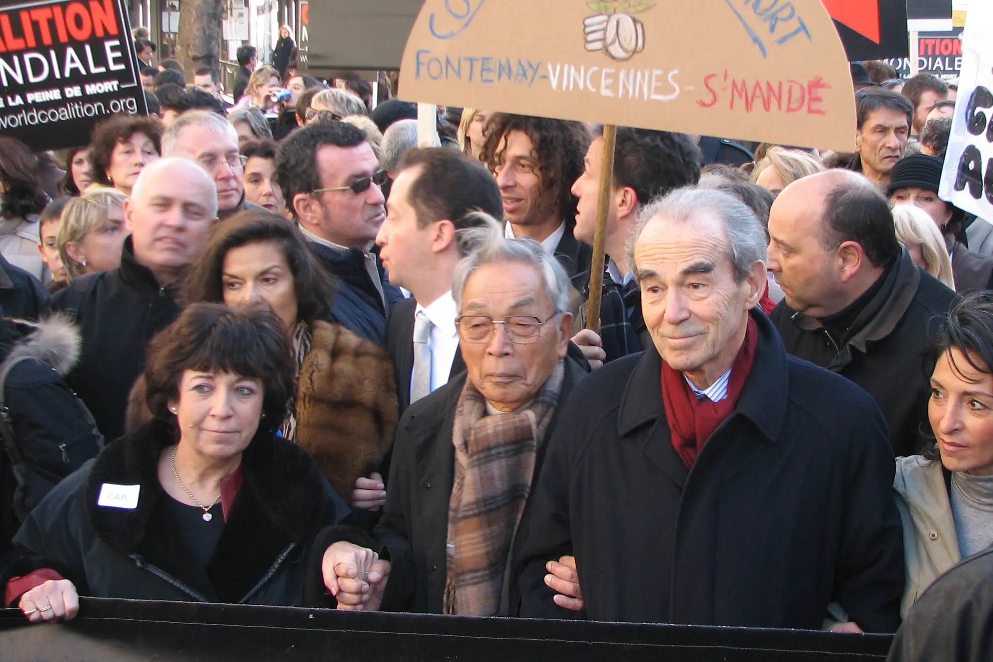 Sakae Menda (center) at a rally against the death penalty in 2007