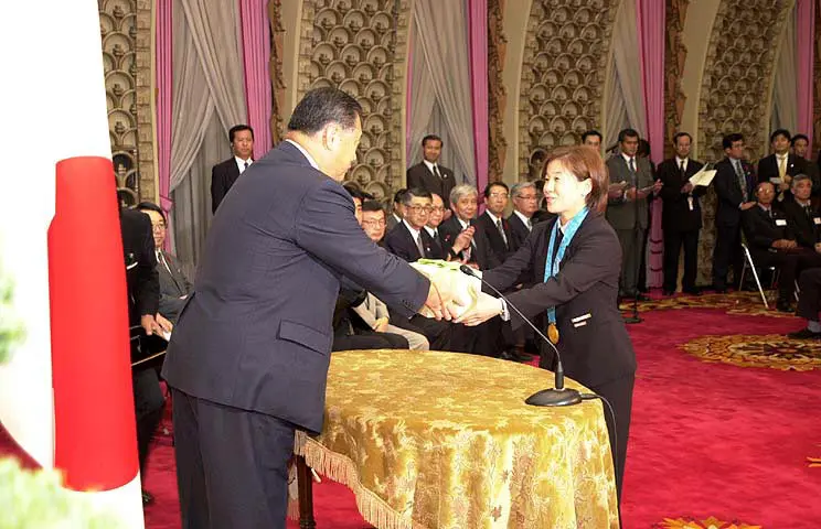 Former Prime Minister Yoshiro Mori and Olympic champion Ryoko Tan. Photo by the Prime Minister’s Office, licensed under CC BY 4.0
