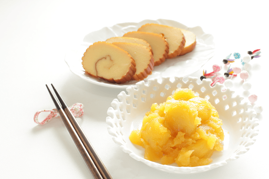 These are sweet dumplings that are made from chestnuts. Because they’re yellow in color, they’re associated with gold, and eating them is meant to bring financial prosperity in the year to come.