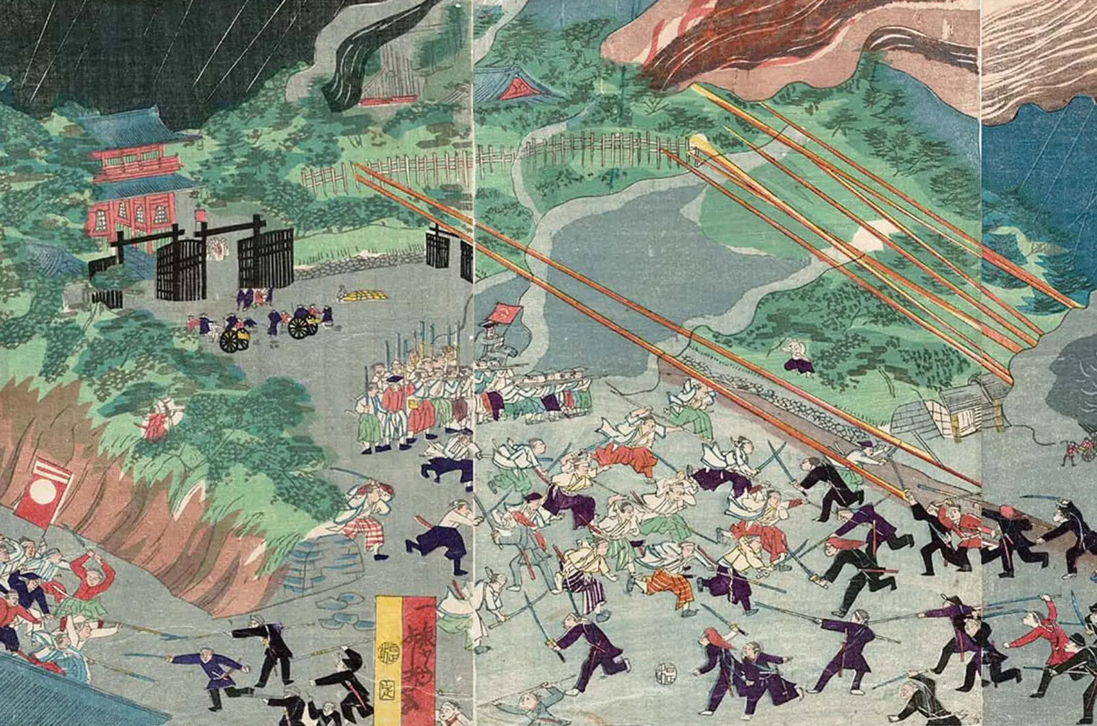 “Battle of Ishiyama Honganji” by Toyonobu (1859-1886) | Wikimedia, edits by TW