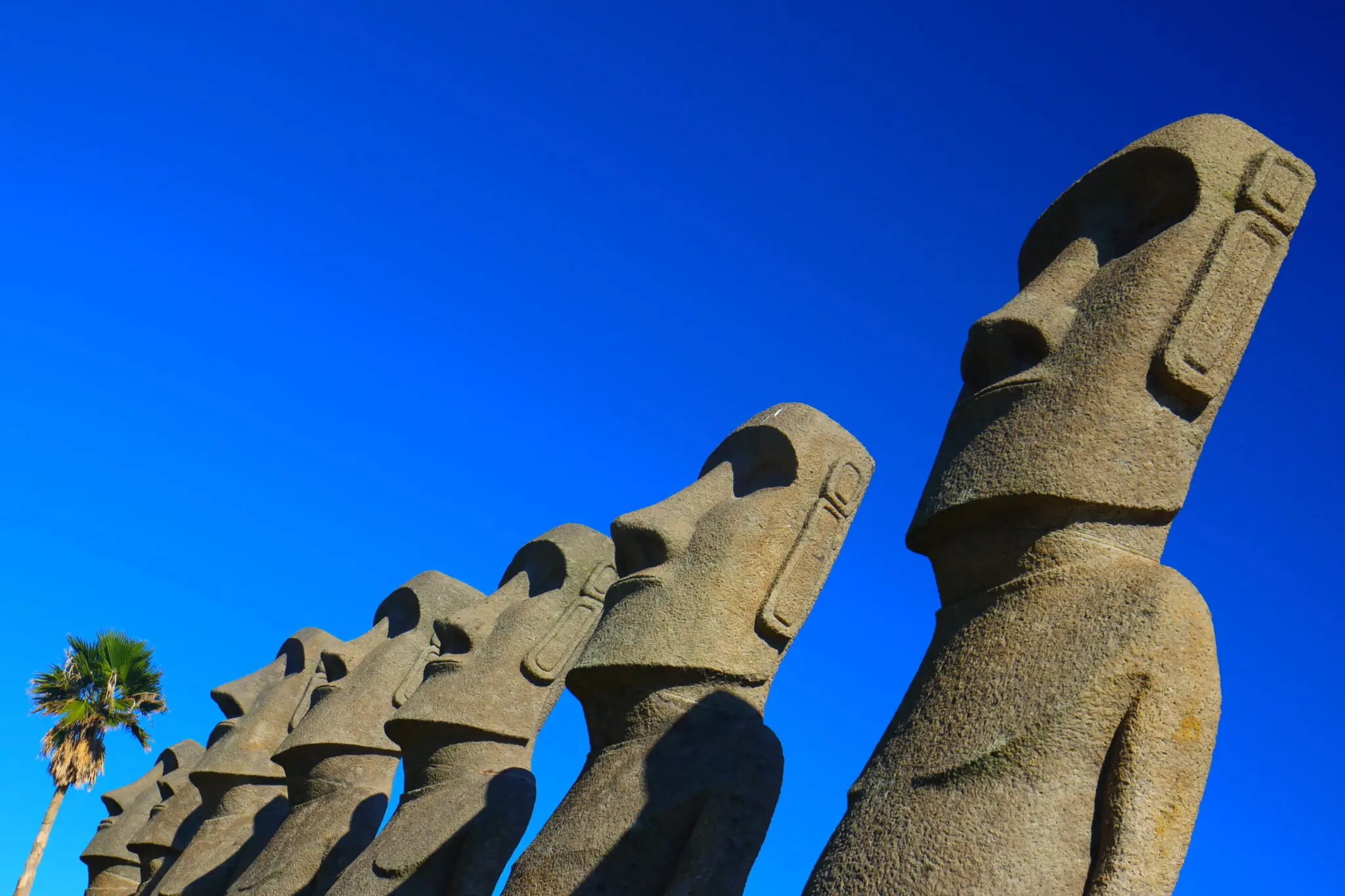 The story is one rooted in tragedy. In 1960, the most powerful earthquake ever recorded — measuring 9.5 on the Richter scale — struck southern Chile, causing immeasurable damage across the country and taking the lives of many. The earthquake’s force also triggered a tsunami, impacting lands as distant as New Zealand, Japan and the Philippines. Chile’s Ahu Tongariki, the largest ahu (stone platform) on Easter Island, was hit significantly by the great wave. The platform was completely destroyed, and the gargantuan moai that it had once held were also damaged, swept hundreds of meters inland. Strewn around the surrounding grass, the statues lay untouched and seemingly irreparable for several decades after.