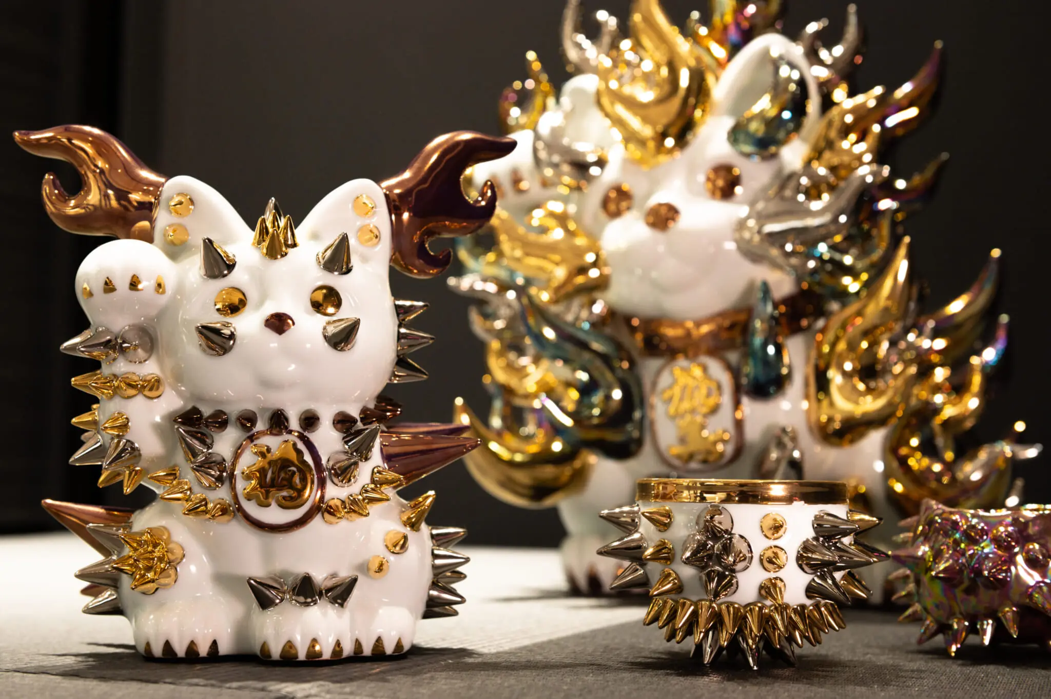 All of Koga’s works start with a traditional object but turn into what one would imagine a punk samurai would love. “Neo Manekineko” and “Neo Daruma” are the strongest examples of how the artist “spikes” his works. Though Koga is not opposed to the punk and rock ’n’ roll comparisons, this was never his intention.