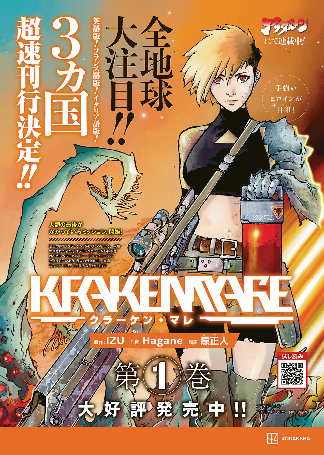 Volume 1 of Kraken Mare, an original manga by French author IZU and Italian illustrator Hagane, has just been released in Japan. Published in Kodansha’s seinen magazine Afternoon, which has previously released hits such as Parasyte and Vinland Saga, Kraken Mare marks a major landmark for foreign artists looking to break into the air-tight world of Japanese manga. Volume 1 also comes recommended by Tsutomu Nihei, author of the cult sci-fi manga Blame!