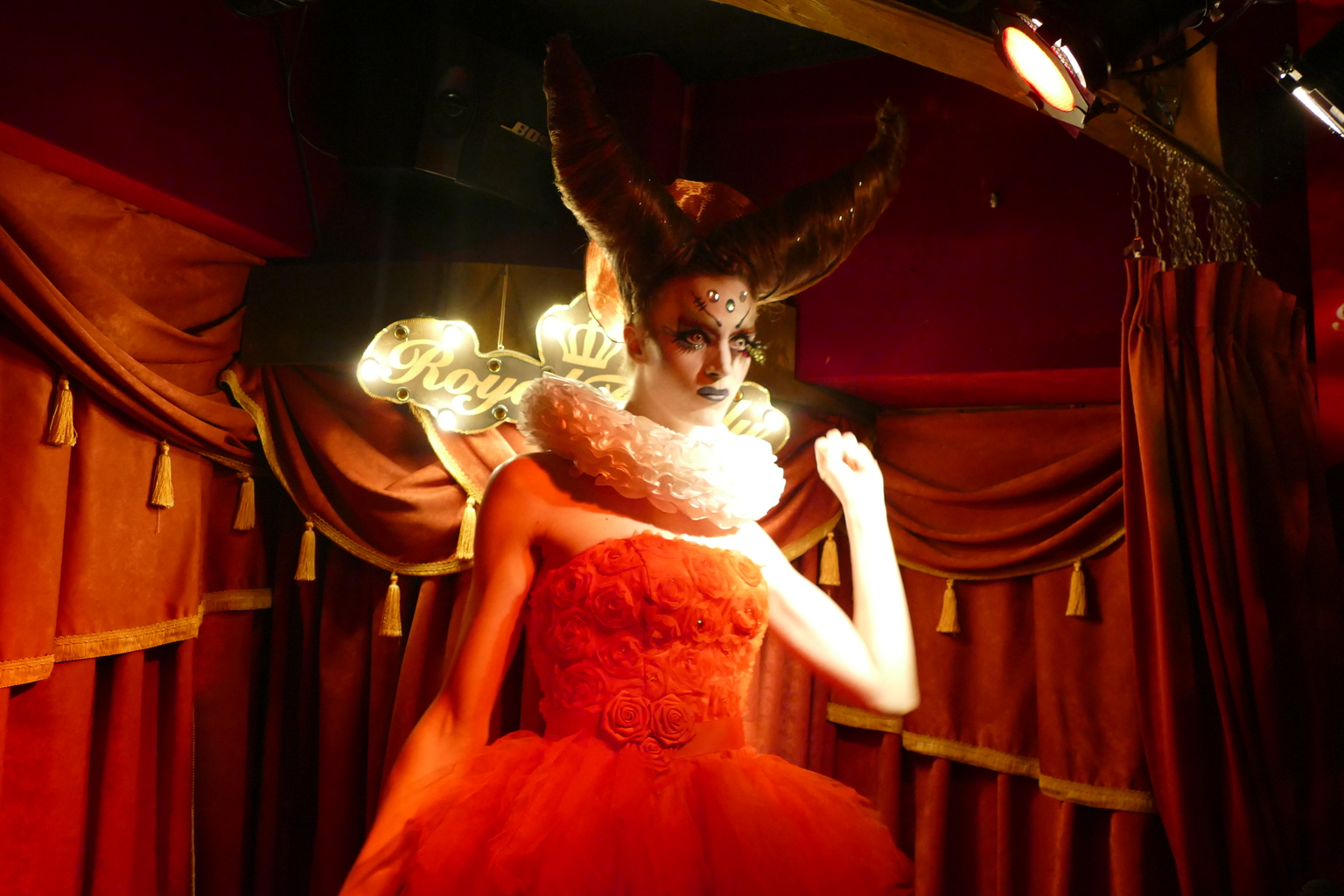 Nattmara (non-drag name Yukiro Dravarious) is the haus mother. Nattmara was formerly known as Die Schwarze Frau, and this is where the haus’s name originates. She performed in drag for a decade before having a gaggle of drag children, who are in awe of her and Verik. They excitedly tell me how Verik taught them everything about makeup and how Nattmara always has the most outrageous, groundbreaking performances. At the TW Proud Voices event, it was Nattmara who made the audience tear up with her reenactment of how LGBTQ people are bullied.