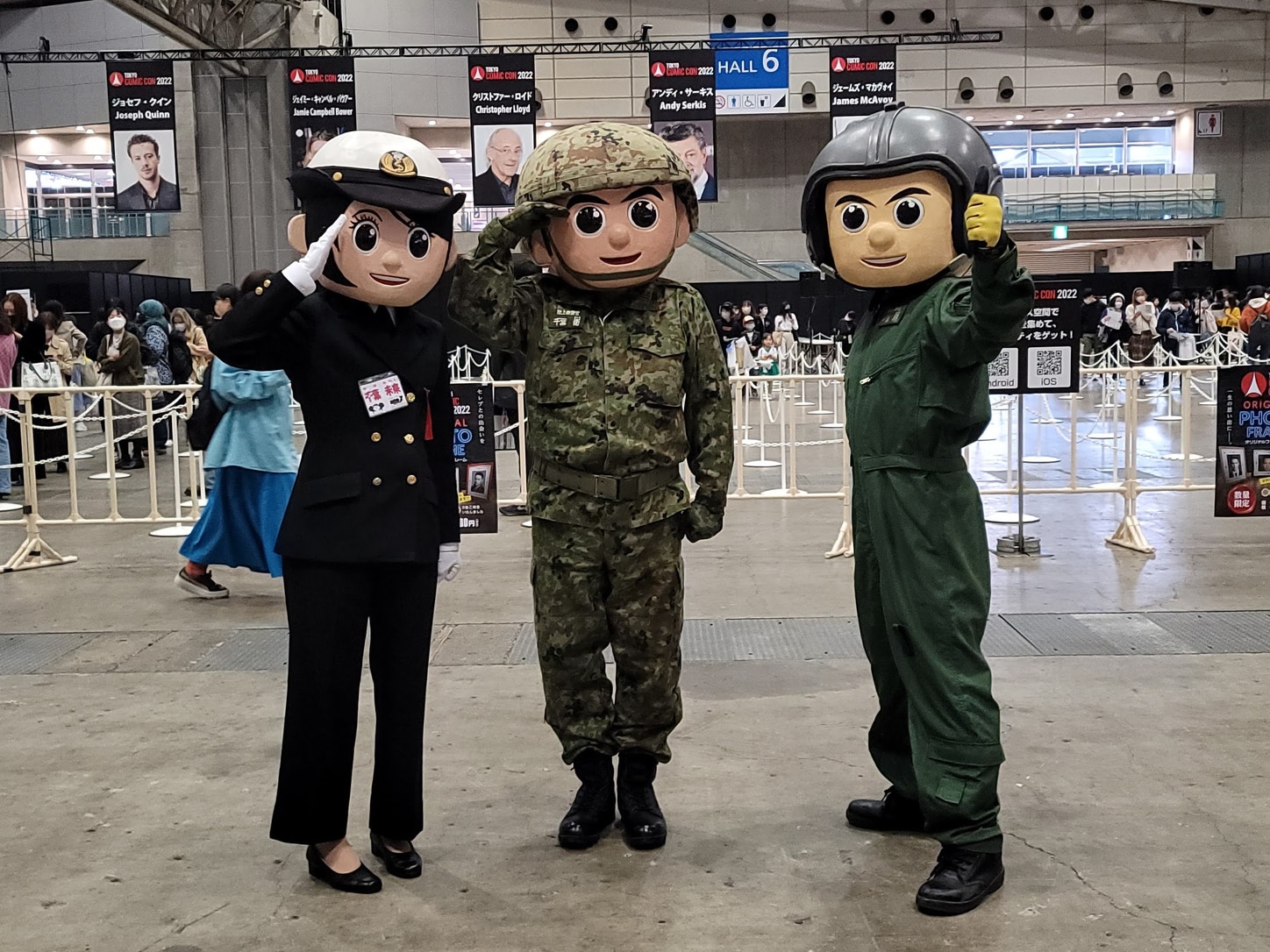 The Japan Self-Defense Force had a booth providing recruitment information, and uniformed mascots walked the show floor taking photos with attendees.