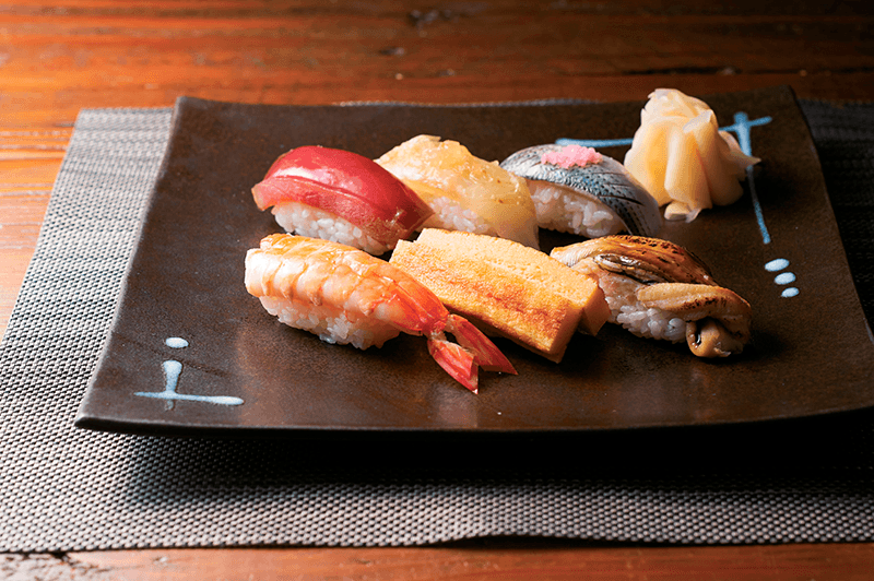 Compared with the current style of sushi, the rice ball in the Edo period was at least 1.5 times larger. Townsfolk of Edo were so busy that they ate sushi at the counter standing in the street stalls. Six pieces of “Hayazushi” will be sold for ¥2,160 at Kuhashi, a retailer within Mitsukoshi Nihombashi. Photo supplied.