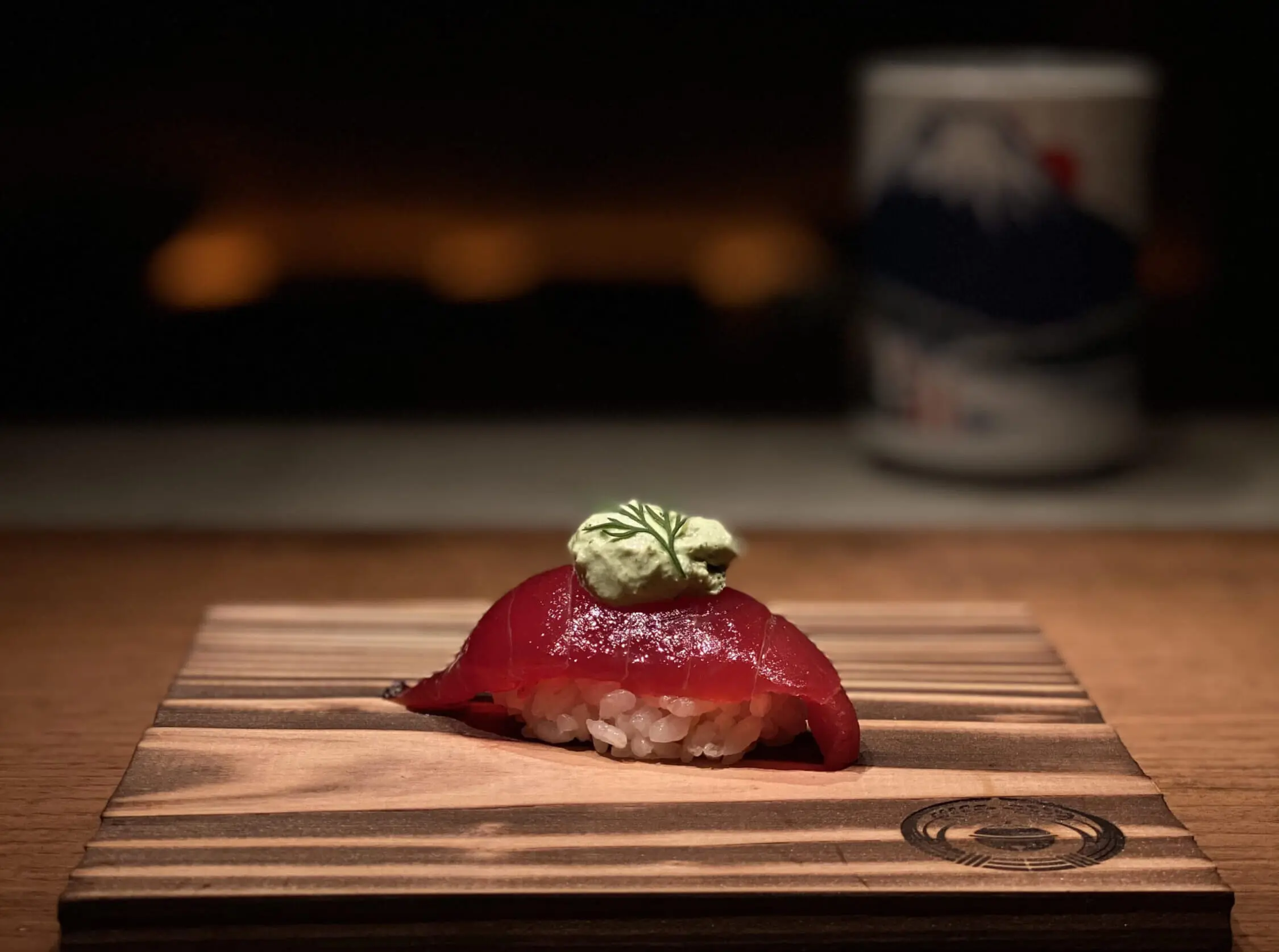 The course also takes you on a journey around the world. As Suzuki puts it: “We start in New York, offering nodoguro with flakes of frozen cheesecake shredded on top. Strangely, it pairs well with the richness of the fish. The trip ends with a dessert sushi in Thailand but stops in India, Brazil and France along the way.”