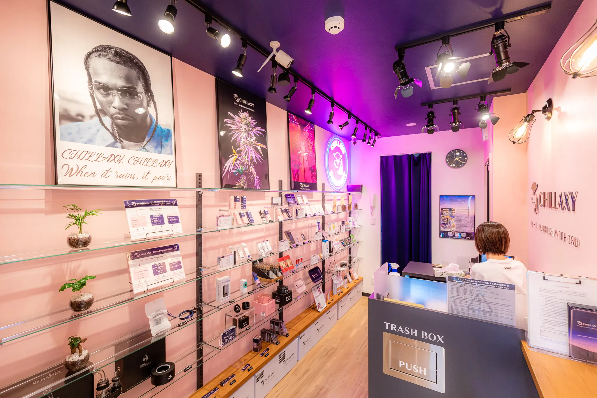 More than CBD itself, Chillaxy Founder Toshiki Inoue believes it’s important to also import weed culture. Inspired by the coffee shops of the Netherlands and higher-end dispensaries in the U.S., he wanted to create a space where people can browse, learn about and enjoy CBD safely and at their own pace. It’s all about creating a cozy atmosphere. “I see [CBD] as a way of recreation,” says Inoue.