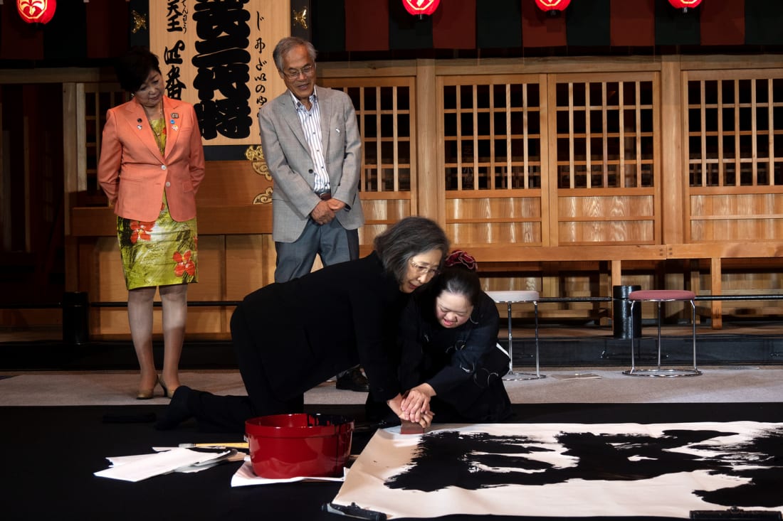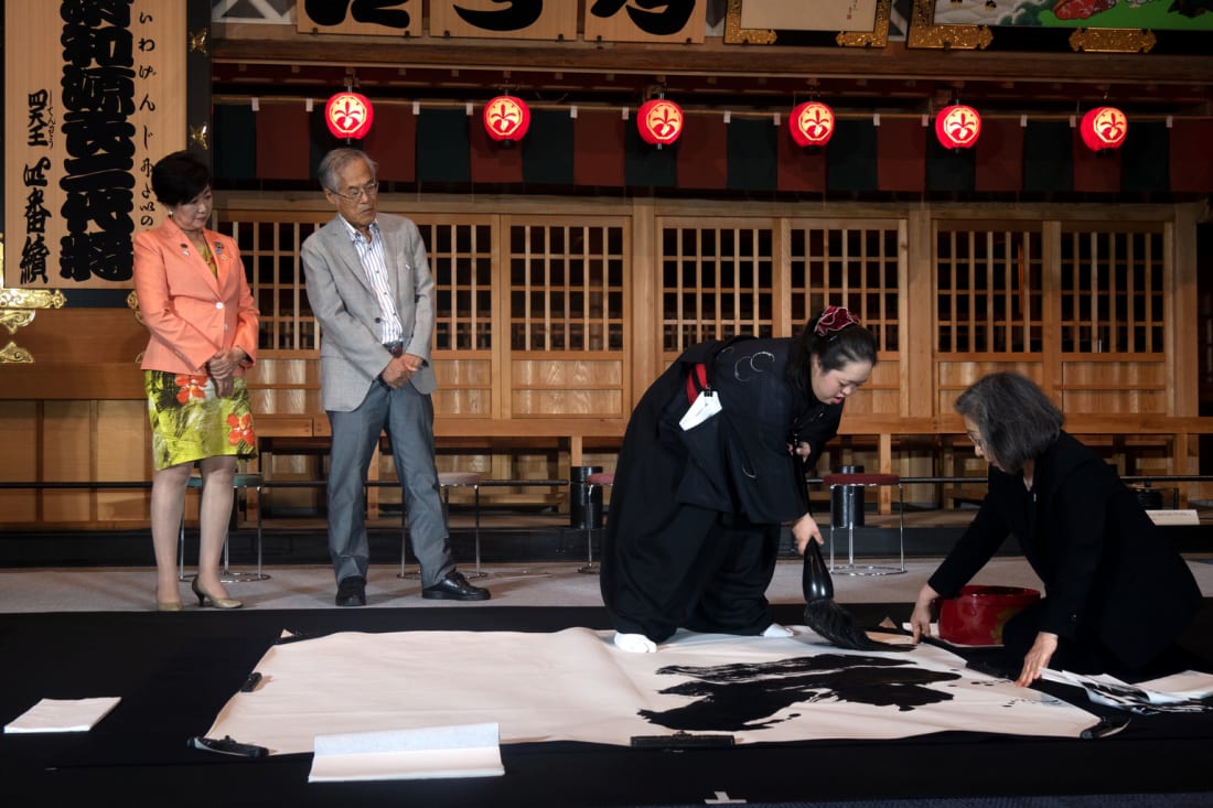 This year marks the 150th of the renaming of Edo to Tokyo, and with Tokyo Governor Yuriko Koike looking on, Kanazawa, dressed in a black hakama, helped write a message commemorating the anniversary, and celebrating Tokyo’s future.