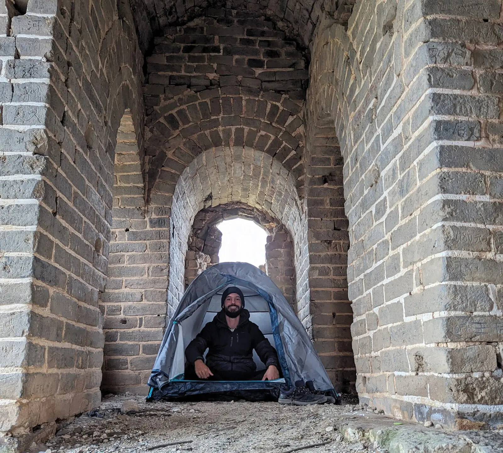 The meetup on November 16 was a celebration of Nok’s no-fly adventure. He regaled his audience with stories of when he shared dinner at a stranger’s home in Iran and when he camped on an unrestored section of the Great Wall of China.