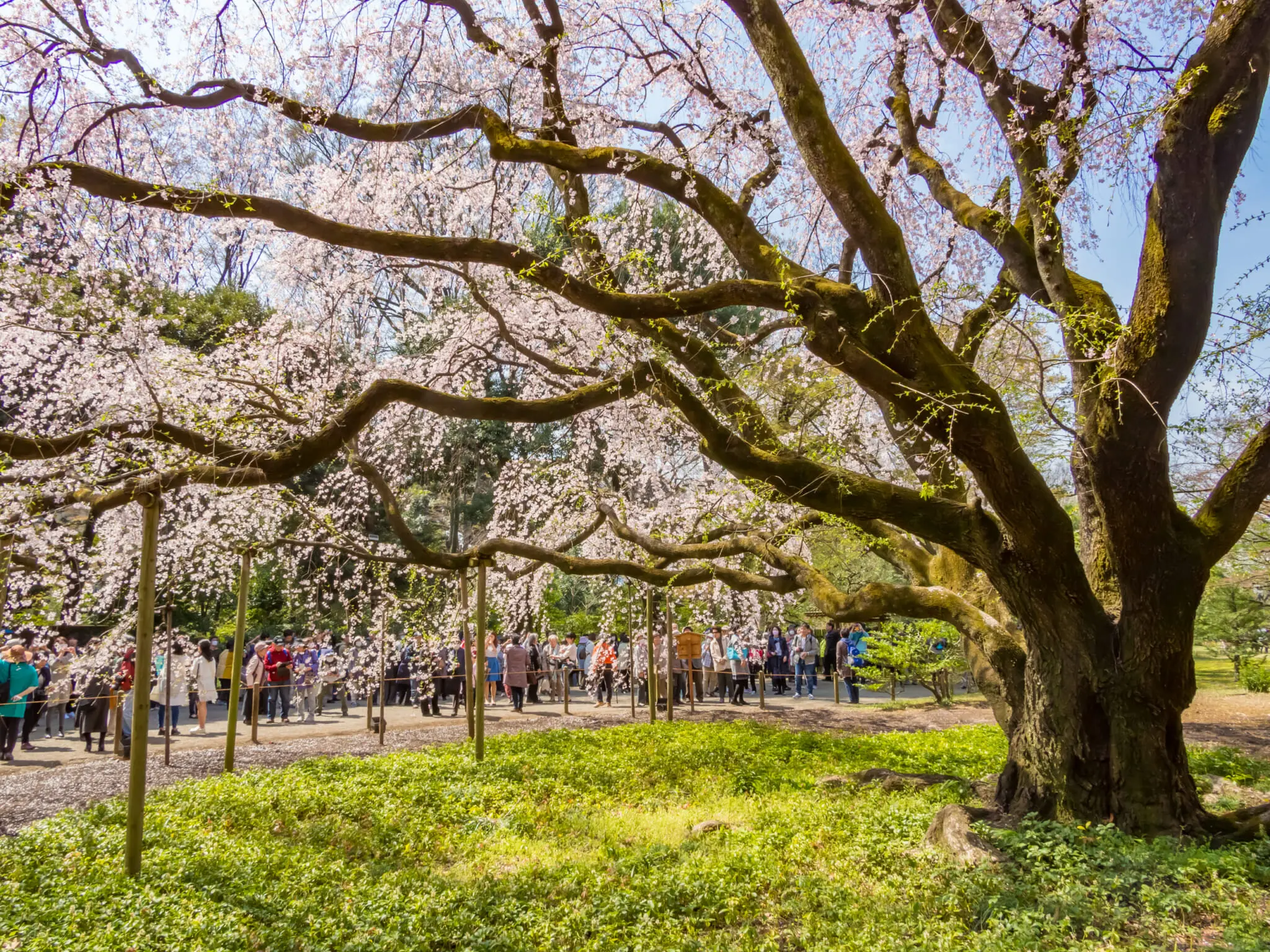 Nakameguro is neither a garden nor a park, but rather a neighborhood famous for being the home to one of the more prominent canals of Tokyo. Lined with low-hanging cherry blossom trees and decorated with bright pink lanterns during the spring season, Nakameguro is great for those who want to take the time to eat delicious food while taking in the sights. Cross over the bridges for a better look down the canal, and to capture the coveted “river sakura” image.
