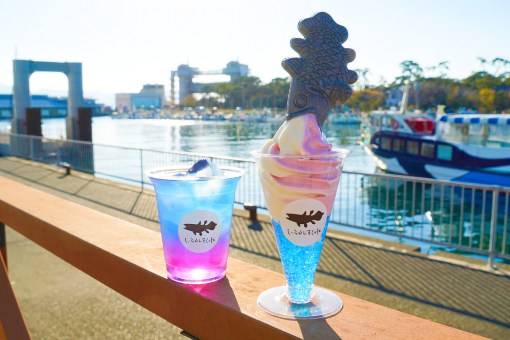 While most visitors to Numazu Port come for the fish market, there is a sweeter destination here. Offering a stunning backdrop of Mount Fuji and Japan’s deepest bay, Suruga Bay, Shirakansu Café is an ideal spot to take a break and enjoy the view. Combine it with their trademark shinkai (deep sea) monaka — a thin, crispy fish-shaped mochi rice wafer filled with Hokkaido-sourced adzuki bean paste — for the ultimate sweet sensation. The fish shape is based on the coelacanth, which is often called a living fossil, thus representing longevity and happiness. The monaka come in a variety of forms and flavors — we love the shinkai black, which pairs a brilliant blue spirulina jelly with soft-serve ice cream, topped with a shinkai monaka imitating a coelacanth diving down to catch its prey.