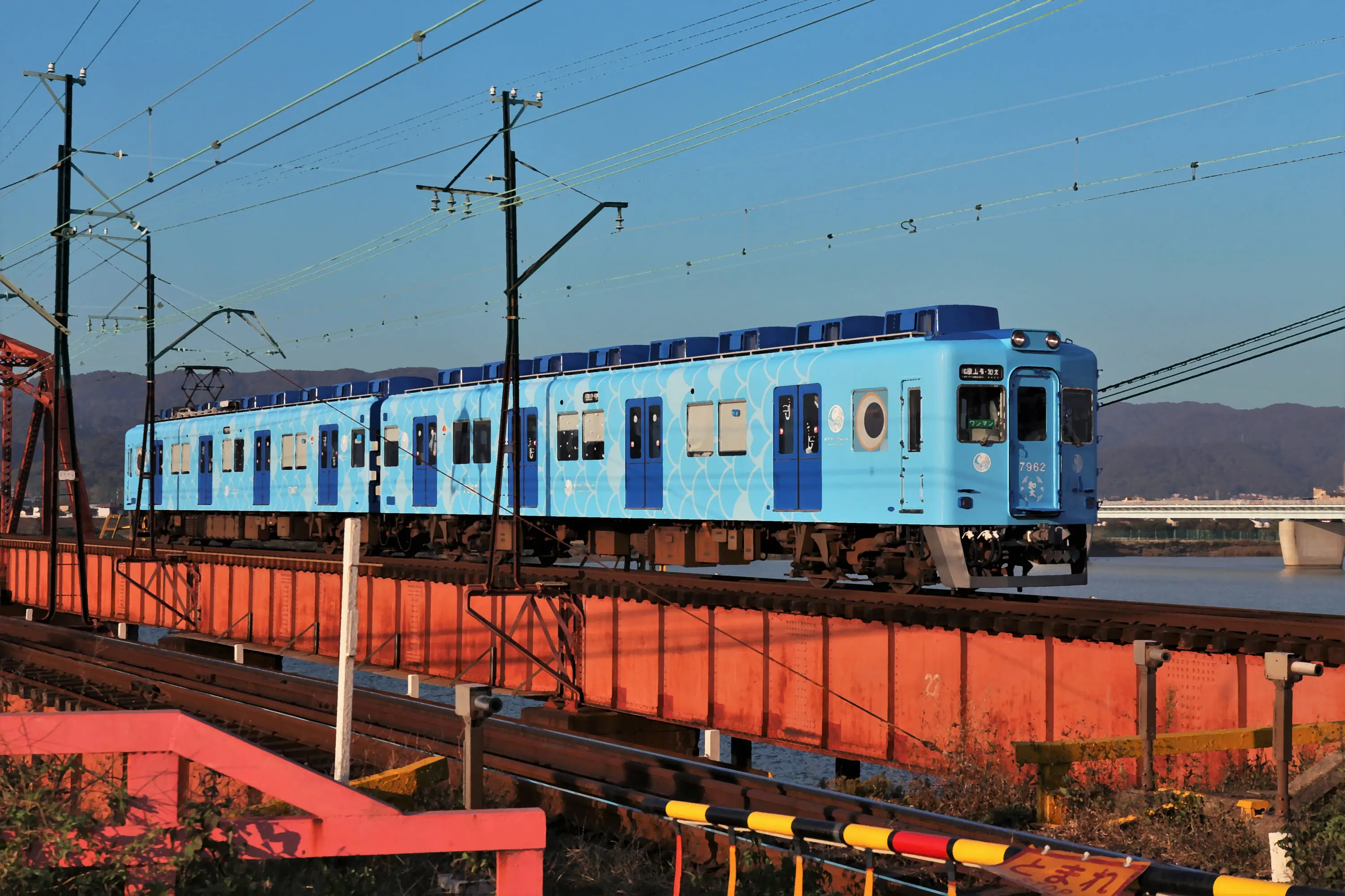 The Medetai Densha crossing a bridge.
