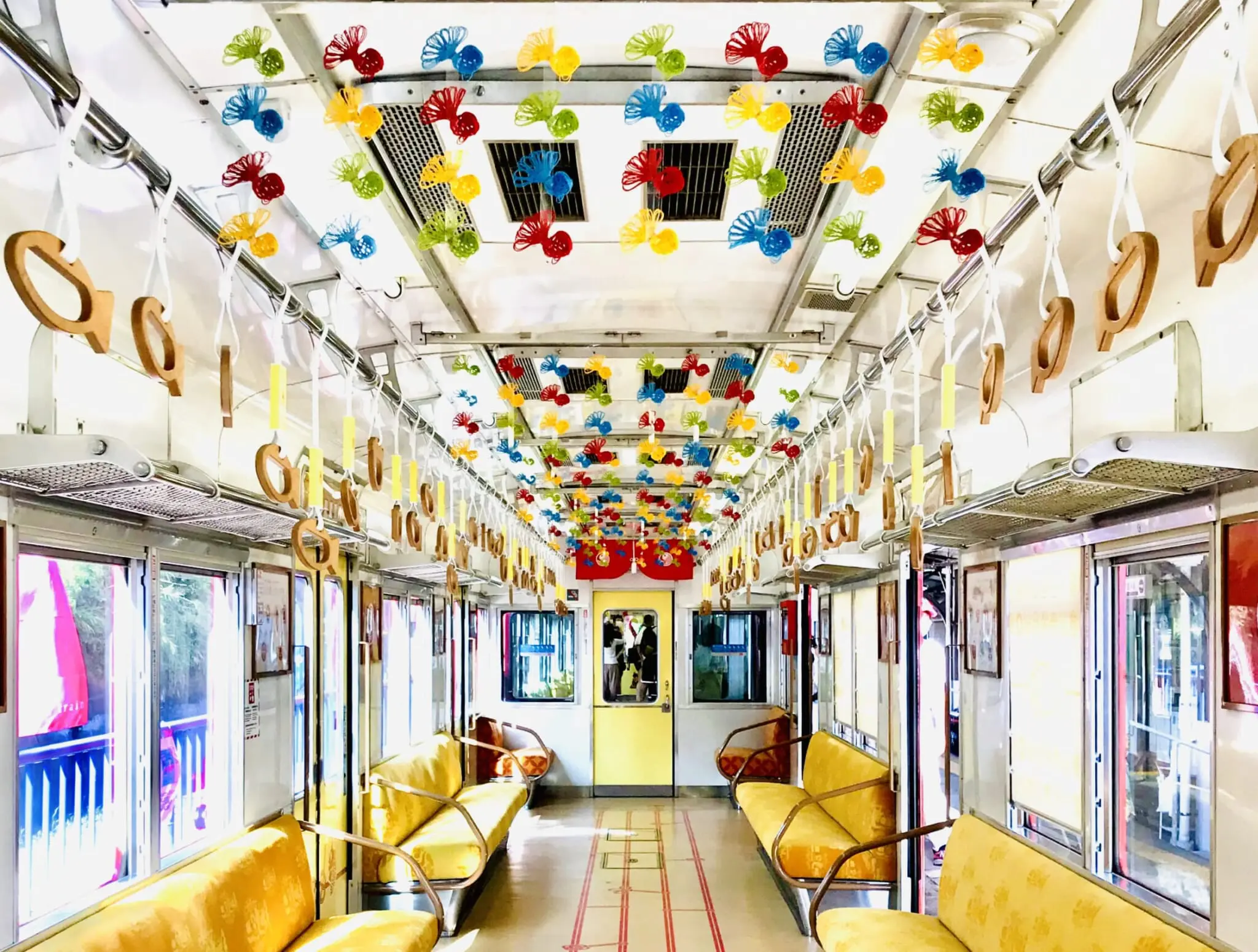 A look at the cute interior of the Medetai Densha.