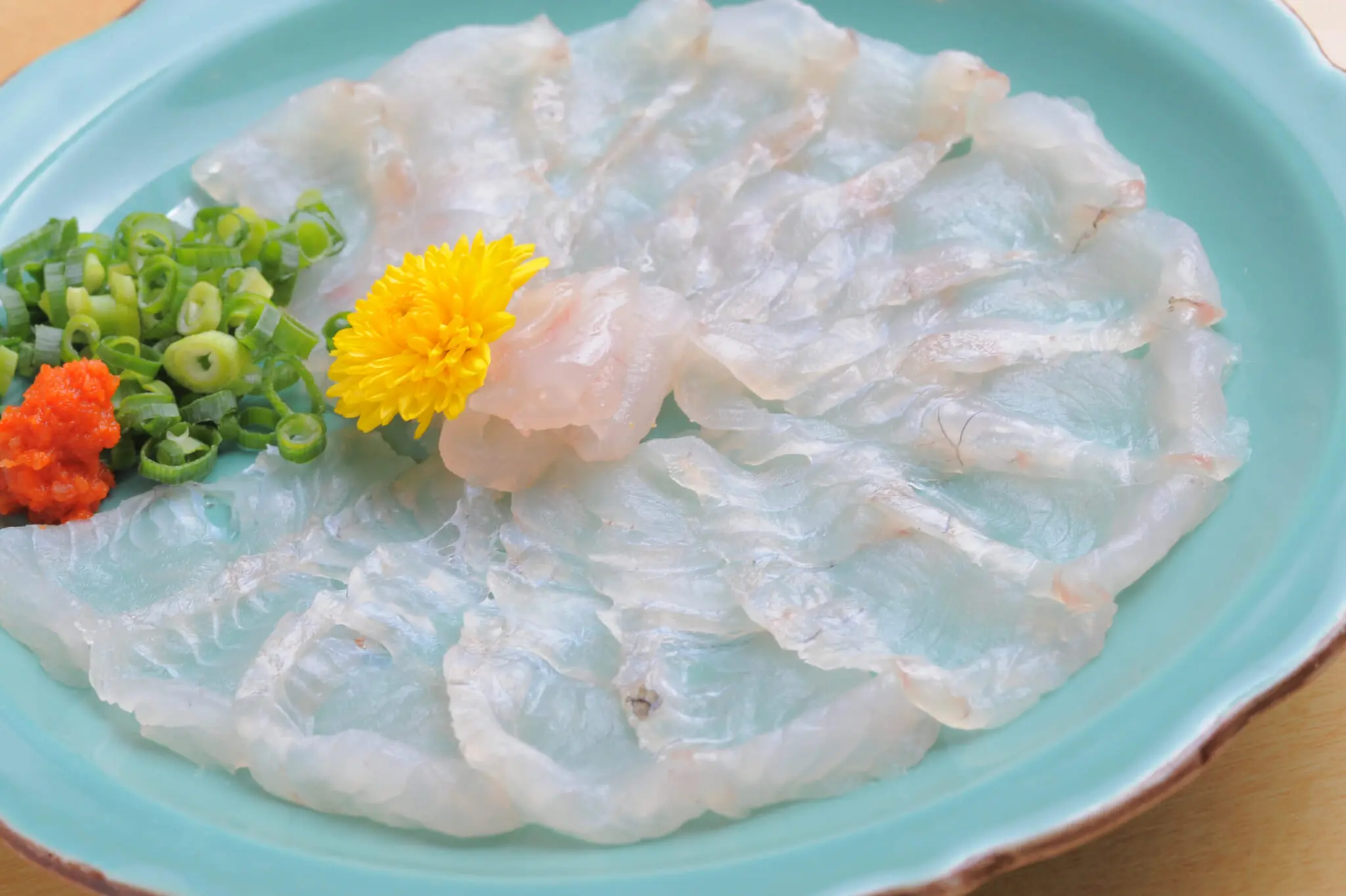 Fugu sashimi image for illustration purposes. Takenaka’s presentation may vary.