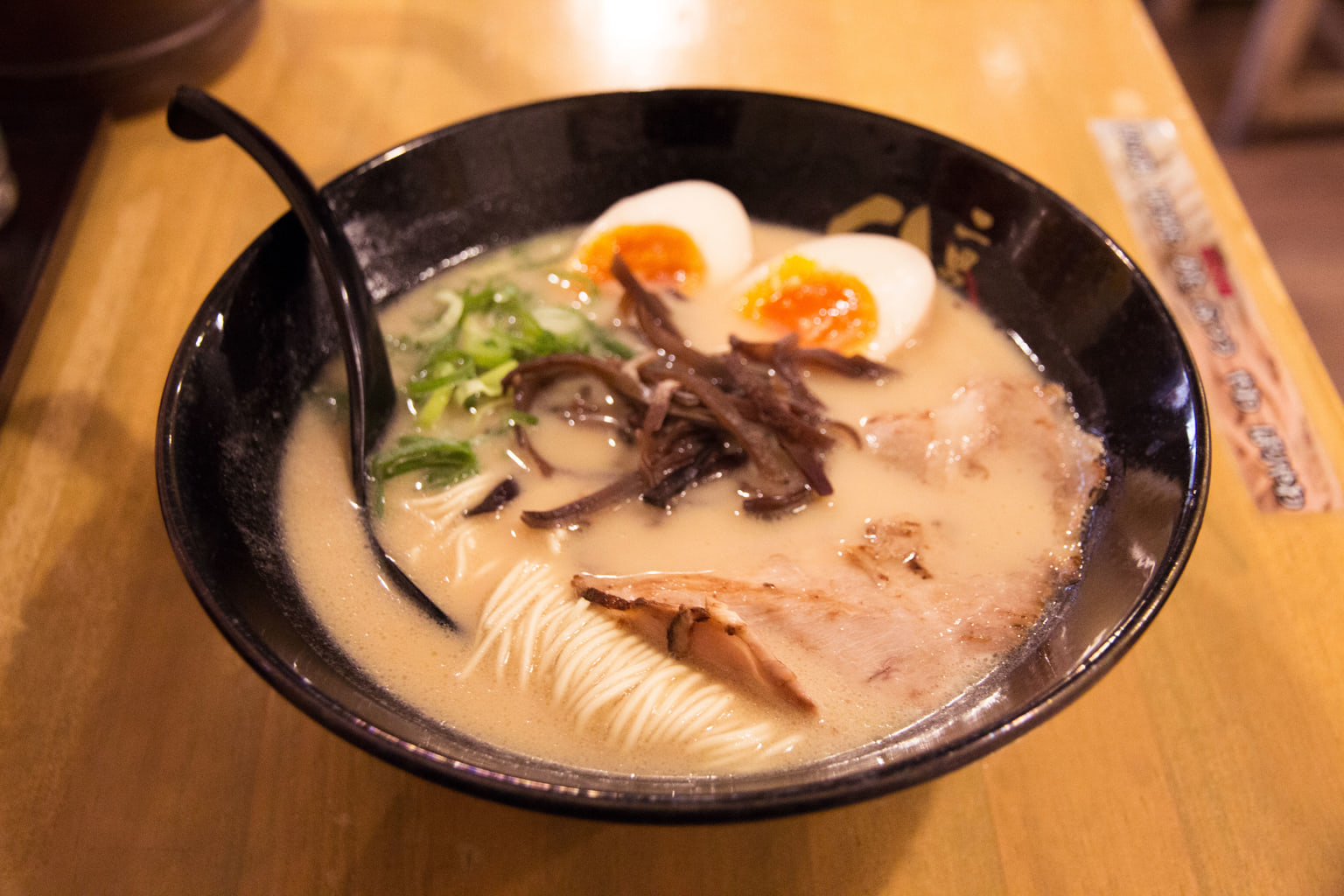 One of the most famous dishes, Hakata ramen, is a pork bone-based soup with thin noodles. Fukuoka’s yatai food stalls are also known for mentaiko and motsunabe, along with other staples such as oden and yakitori.