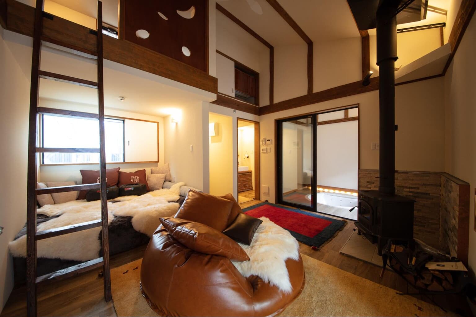 There are 20 villas studded around the property, each fronted by a terrace where you can enjoy the passing sounds of Japanese nature or gaze at the star-filled firmament after dark. The villa interiors are a seamless combo of rustic and elegant: each is equipped with a wood-burning stove and a loft with a hammock. The designers at Glamping Villa Hanz dared to go with animal-fur beddings and sleeping bags for an indoor-outdoor luxurious feel.