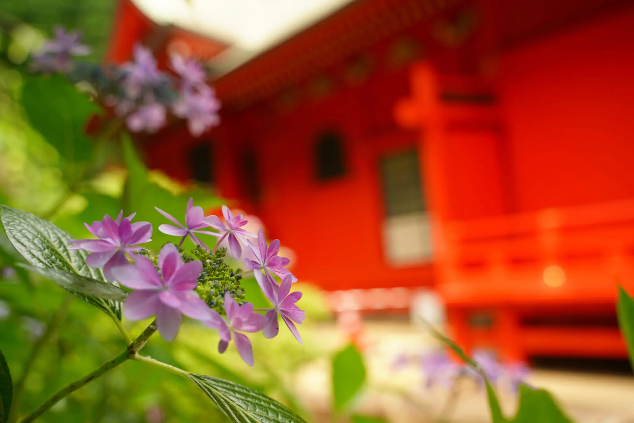 Also in Kamakura, Hasedera Temple has more than 40 varieties of hydrangeas during the rainy season. It is famed for its 11-faced wooden Kannon statue and the beautiful ocean view. Izu Oshima island can be seen on sunny days.