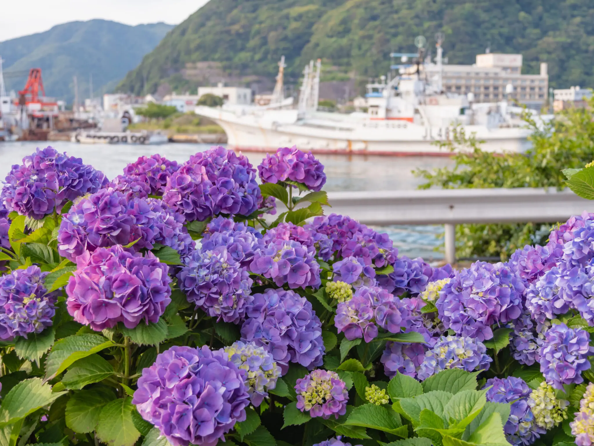 Unshouji Temple is known as “a place you must visit before you die.” Shuun Konaka, the deputy chief priest there, was entranced by a hydrangea growing on the temple grounds. His love for the flower led him to propagate 1,500 hydrangeas in and around the temple, so when they’re in bloom, the whole garden is overflowing like an ocean of blue. With the backdrop of the Kitaura port town and Olga Bay, it’s a sight not to be missed.