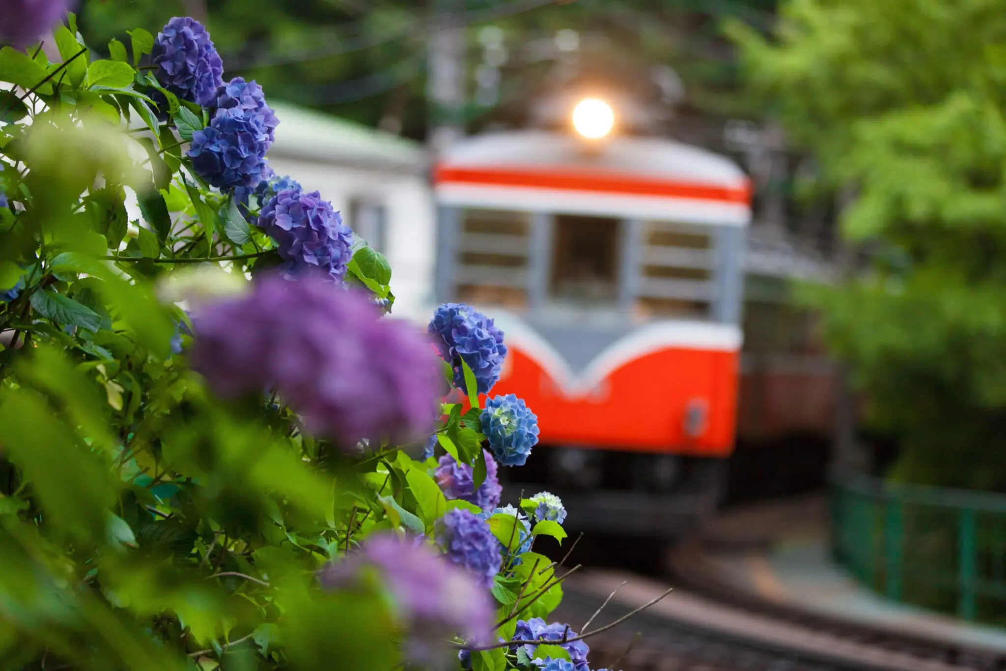 Every rainy season, thousands of hydrangeas blossom along the mountainside where the Hakone train tracks run. The Hakone Tozan Railway, which goes from Yumoto to Gora, celebrated its 100th anniversary in 2019. Usually, during the hydrangea season, the trains run in the evening, when you can ride the “Ajisai Train” and enjoy the gorgeously lit-up hydrangeas. Stations along the railway all show hydrangeas in different photogenic spots.