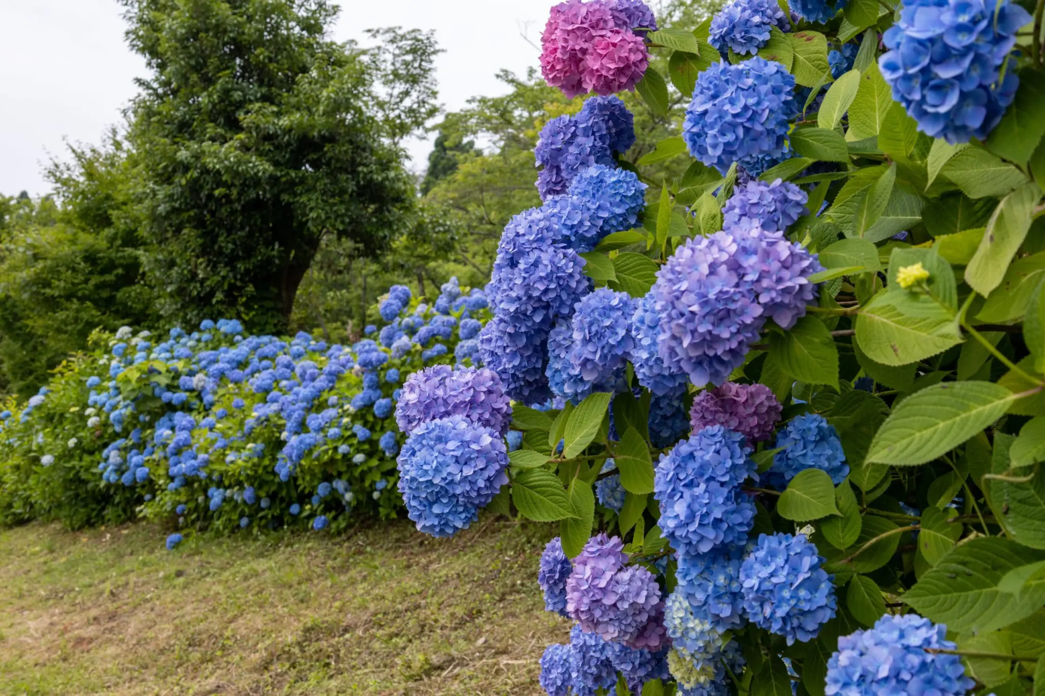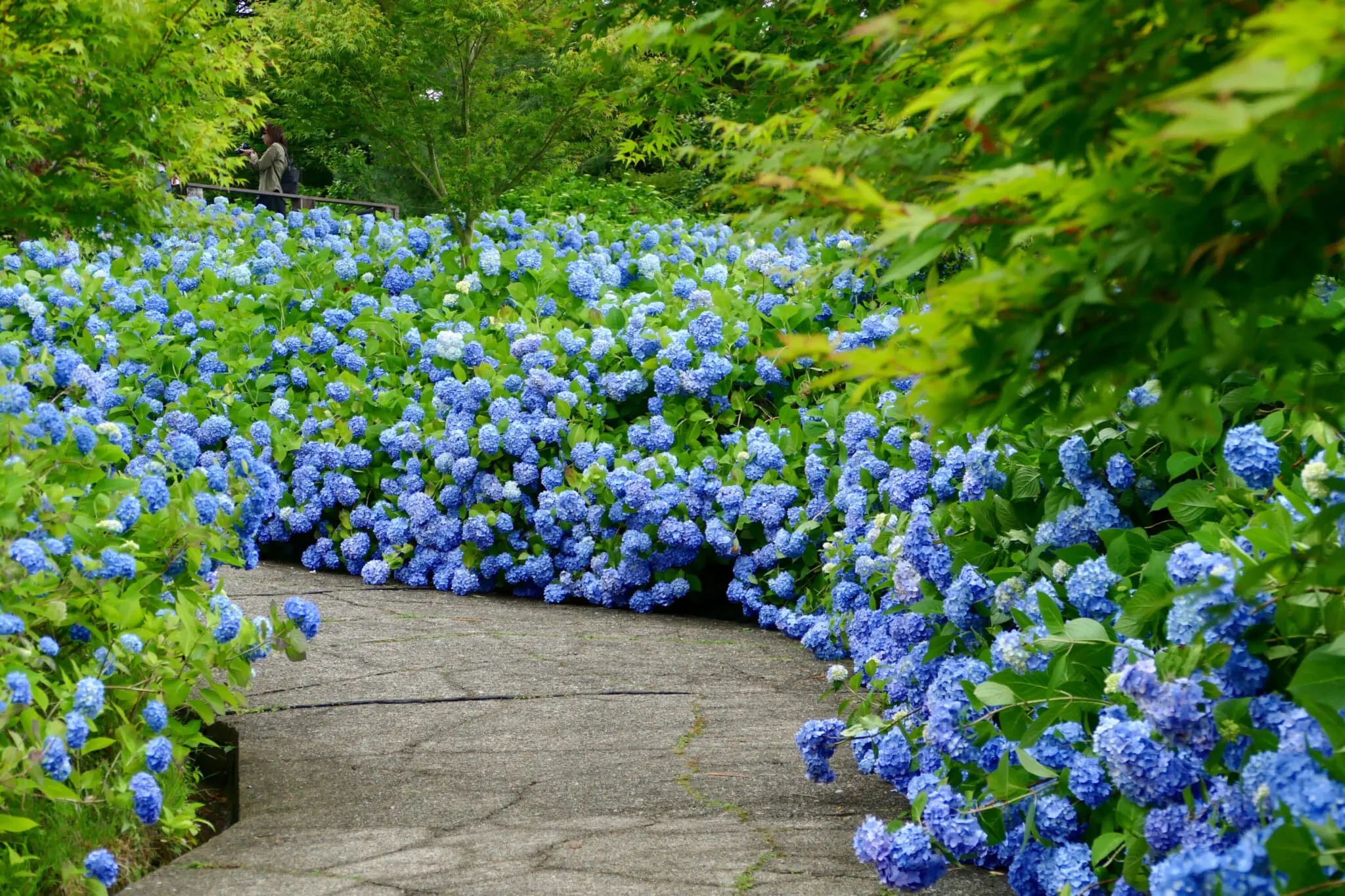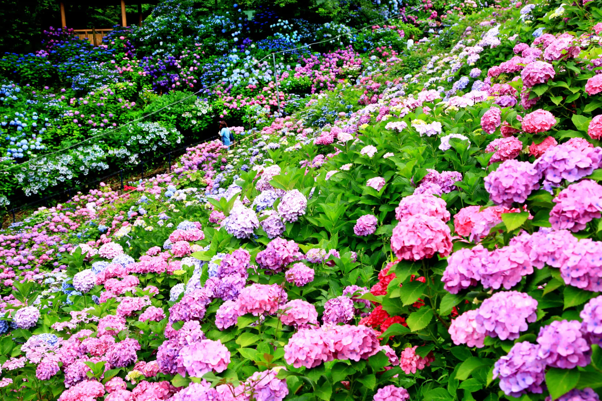 Another popular spot in the Kansai region, visitors can enjoy 100,000 hydrangeas at the Maizuru Nature and Cultural Park. It’s nicknamed the Sea of Hydrangeas, as blue, white and purple hydrangeas blossom throughout the grounds. Visitors can also enjoy watching hydrangeas being replanted or plant them themselves. There are then mini-performances and other fun activities.