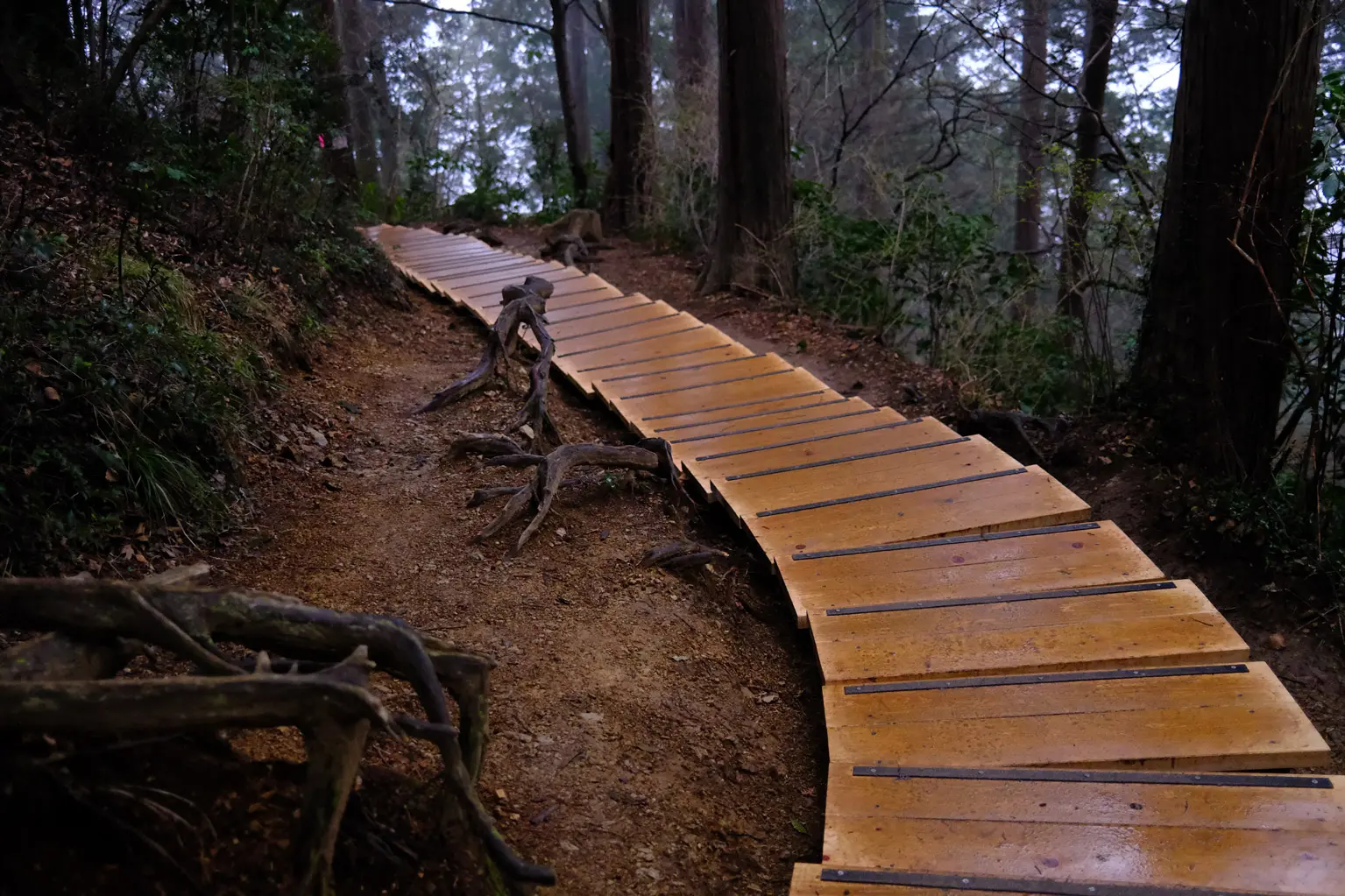 Heading out of town, the route starts off easy with cedar-lined paths but soon gets a bit more exciting as you reach rockier chain-assisted sections. The path continues on in a similar fashion to the Mount Odake summit, where knotted roots and rocky inclines make up most of this final pre-summit stretch. Once you get to the top, you can rest easy knowing most of the hard work is behind you.