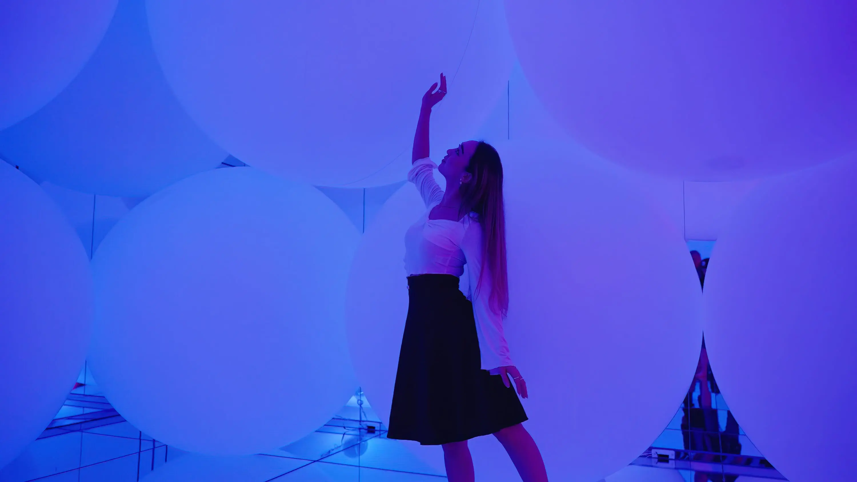 teamLab, Expanding Three-Dimensional Existence in Transforming Space – Flattening 3 Colors and 9 Blurred Colors, Free Floating © teamLab