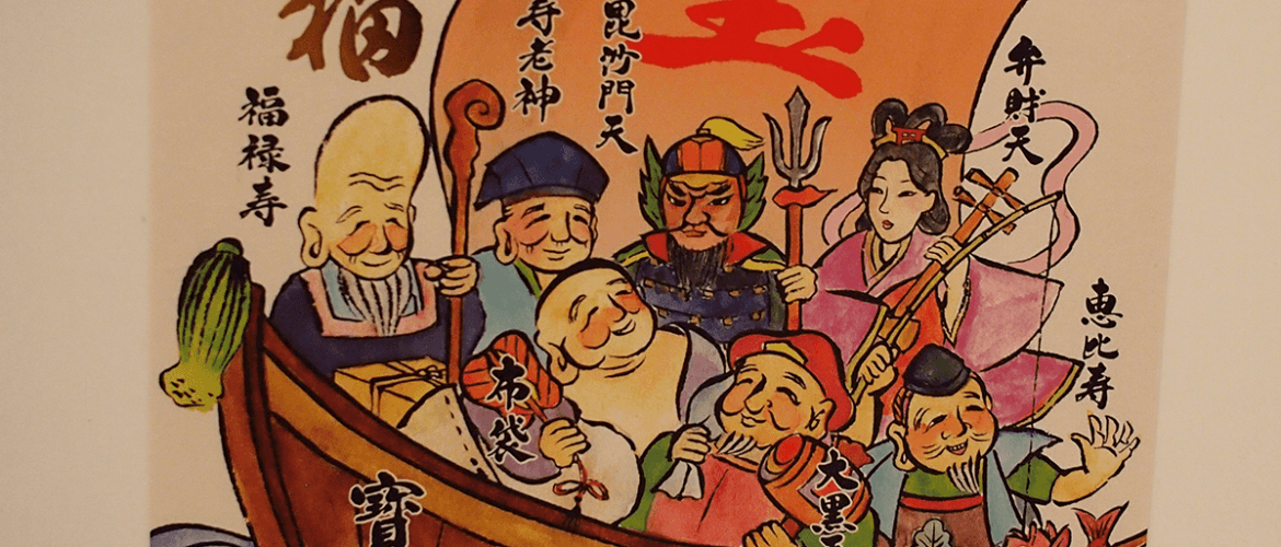 Images of the Seven Lucky Gods can be found in many places around Japan, including what can only be a very lucky bottle of sake