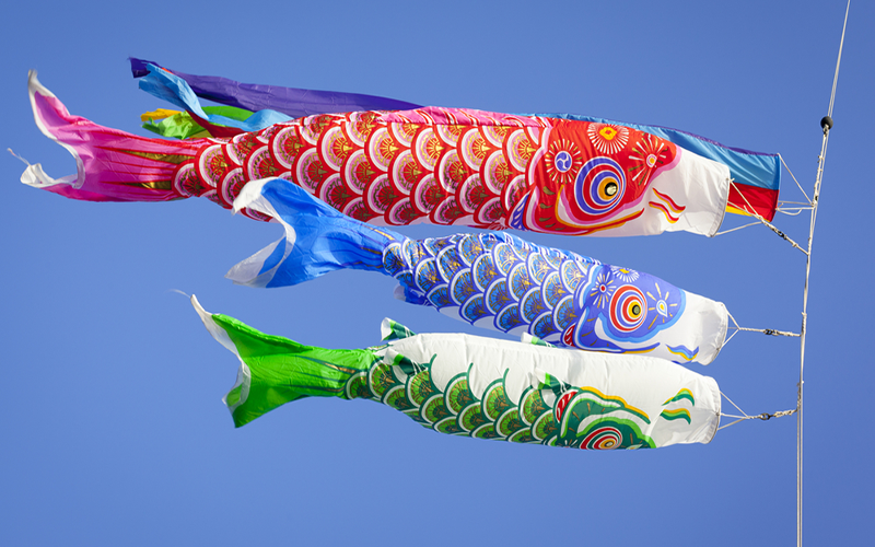 This collaborative art installation puts a new spin on the traditional Children’s Day koinobori. Koinobori are the colorful koi carp-shaped streamers hung outside houses to commemorate Children’s Day, in the hopes that the young will grow up strong and “swim upstream.”