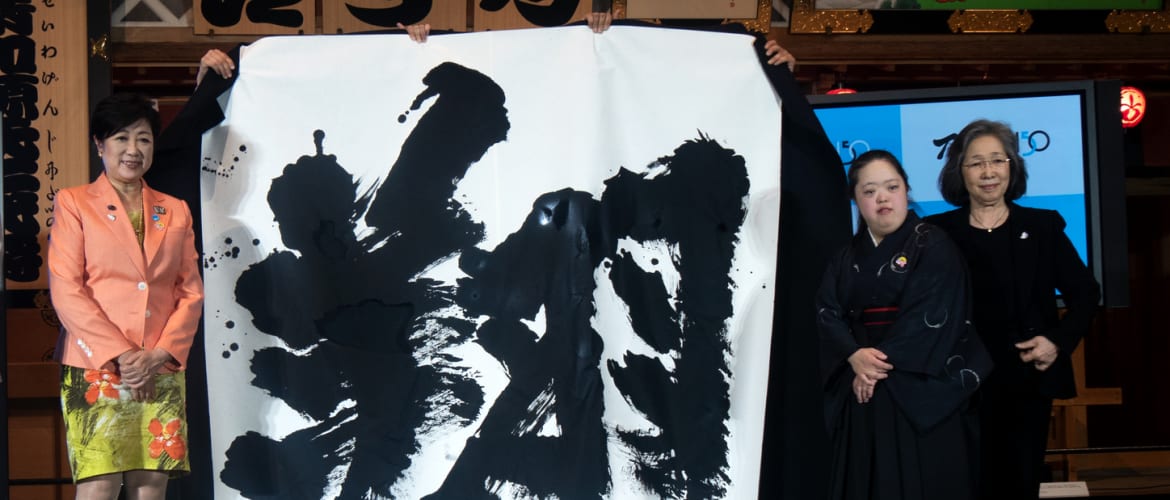 This year marks the 150th of the renaming of Edo to Tokyo, and with Tokyo Governor Yuriko Koike looking on, Kanazawa, dressed in a black hakama, helped write a message commemorating the anniversary, and celebrating Tokyo’s future.