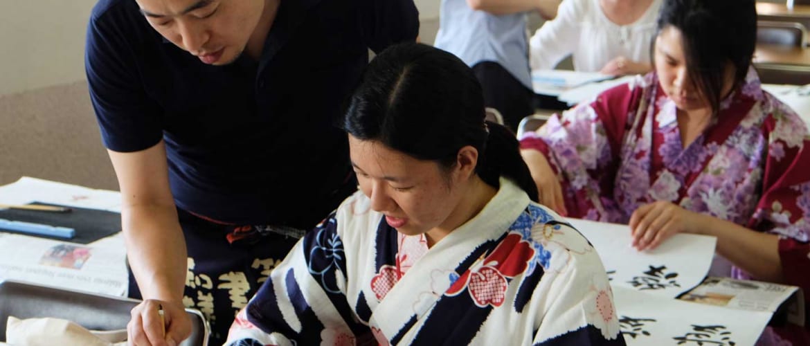 Wayo Udoyoshi teaches Shodo calligraphy lessons in the wayo style – a uniquely Japanese form of calligraphy from the Heian period that developed from the female writing style. Wayo uses hiragana, Japan’s sound-based alphabet, making it a more readable form of writing than using kanji alone.