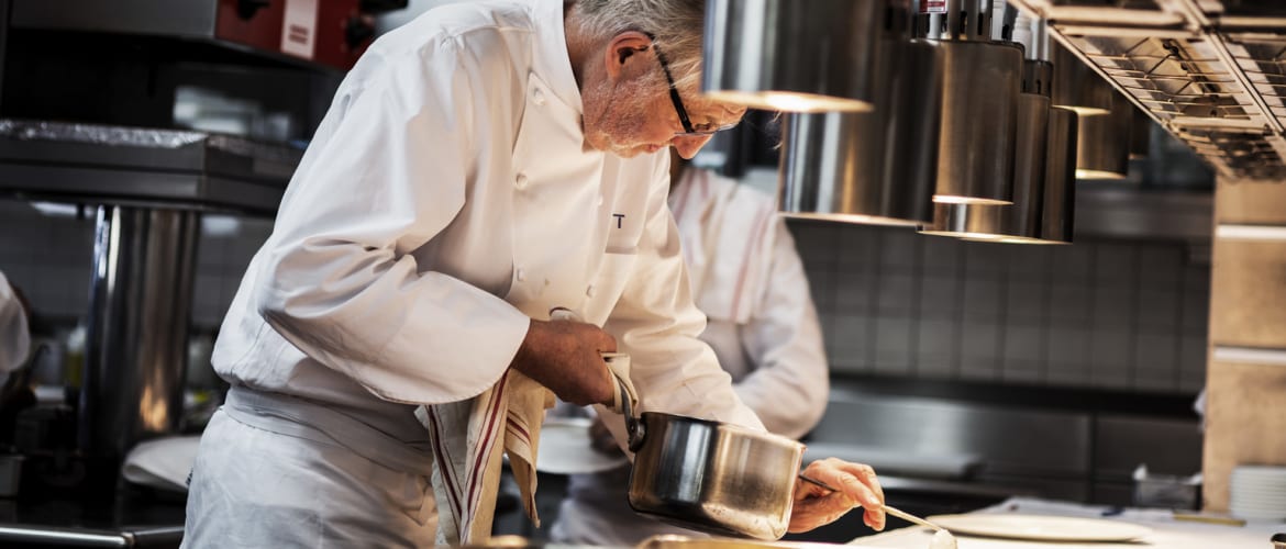 As any other artist, the chef finds ideas in constantly cooking and being involved in the work, even after four decades of being a restaurateur. He says he often cooks in the restaurant alone, after hours. What comes out is not just delectable, but also creative and adventurous. He either strives to find new ingredients or use ingredients in a new way, close to his own sensibility. He is known for being at the forefront of French cuisine, expertly mixing unexpected ingredients, like fish and beef sweetbread in the lunch course offered in Tokyo.