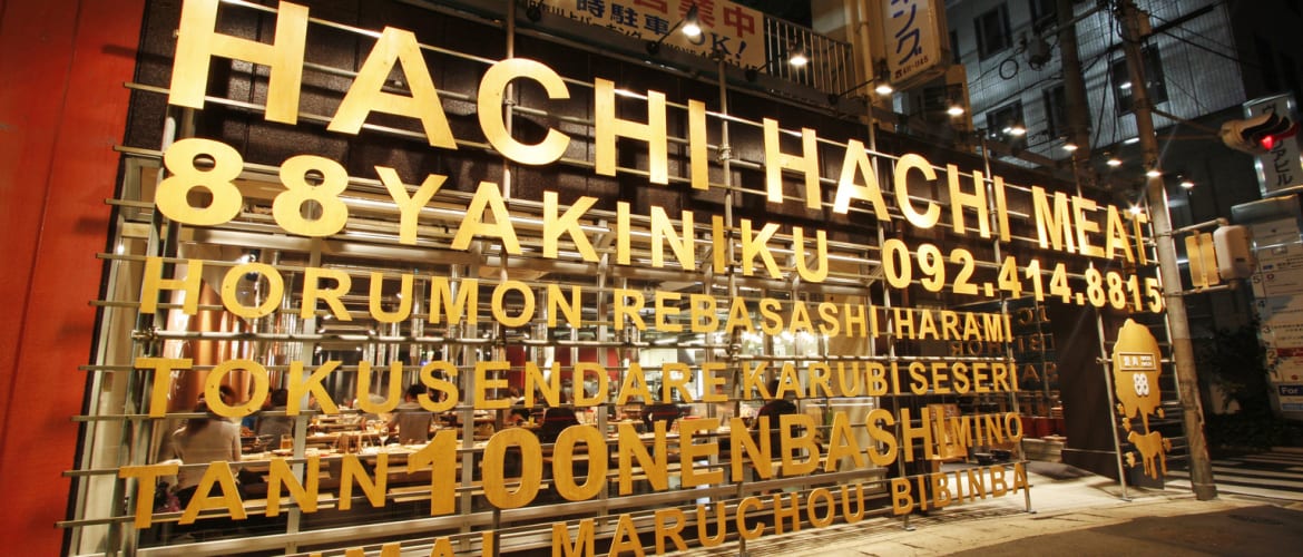 HACHI HACHI (88) Hakata uses carefully selected ingredients sourced from Saga and Miyazaki prefectures, which are near the sophisticated yet reasonably priced yakiniku restaurant’s home base of Fukuoka in Kyushu Prefecture. One portion of mouthwatering Kyushu wagyu beef barbecued specially over a shichirin charcoal grill is only ¥480. Paired with Japanese beer, this is one savory Japanese yakiniku experience that must be enjoyed.