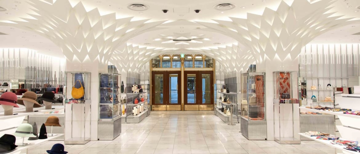 Nihombashi Mitsukoshi’s exterior echoes the buildings of 18th-century Europe and features decorative moldings above every entrance as well as a generous dose of marble from floor to ceiling. Considering its long history, which dates back to the 17th century, and its many innovative offerings that helped to define the department store as one of the best in the country, it’s no surprise the Nihombashi location was designated an Important Cultural Property in 2016 and won the title of the Hallmark of Japan.