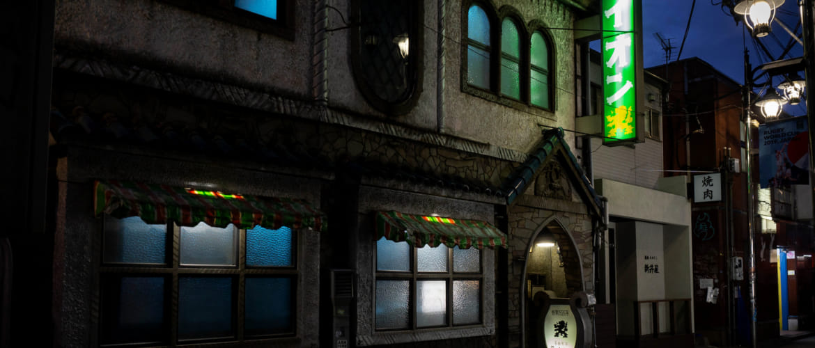 Lion is the oldest and most well-known of Tokyo’s remaining meikyoku kissa – “masterpiece cafés.” The rear wall features a towering 3-meter-tall wooden speaker system specially designed by Pioneer. Placed around the interior are many cabinets stacked with Lion’s collection of over 5,000 records.
