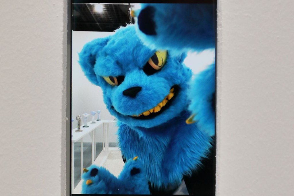 COIN PARKING DELIVERY, from Tochigi, became an artist in 2018 when he started drawing on his phone after feeling bored while on a train. Now, his practice has come to include plastic art, environmental art, drawings and art direction for shop interiors and public spaces. His solo exhibition sits at the crossroads of Japanese and Western art – that is, of “two-dimensional interpretation,” or the flat and graphic Japanese painting tradition, and “three-dimensional interpretation,” which refers to the Western painting modes that produced realism. At the same time, his compositions are bursting with energy and his characters are like Western cartoons.