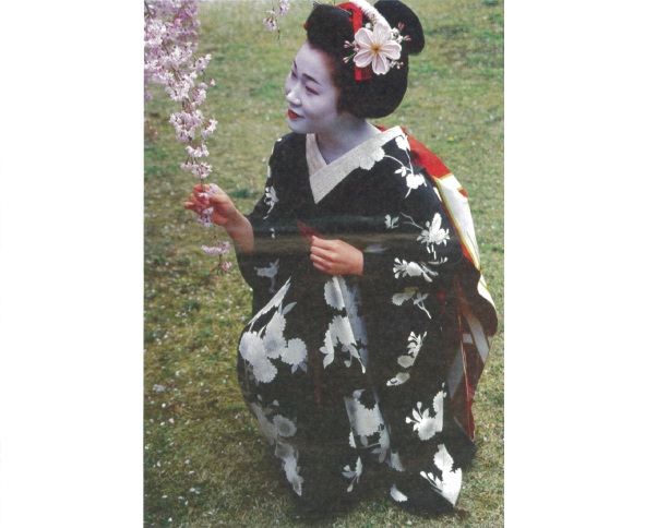 “I had been collecting geisha name cards after attending a geisha show in Kyoto, and then one night I went to a disco where a friend was deejaying,” he recalls. “Then this maiko-san enters in full regalia.”