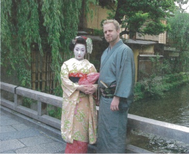 The empty evening lanes of Kyoto’s Miyagawa-cho echo with the jingle of bells in okobo clogs worn by a maiko tripping along to her next appointment. It’s a sight foreigners in Japan are sometimes lucky enough to catch while touring the ancient capital, but chatting up the white-powdered girl like an old friend is Canadian Peter Macintosh, an habitue of the secret “flower and willow world” of geisha.